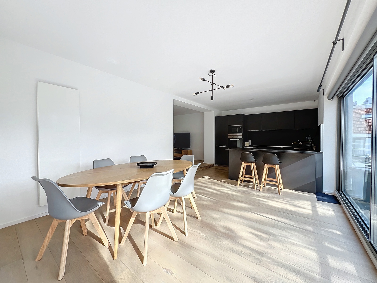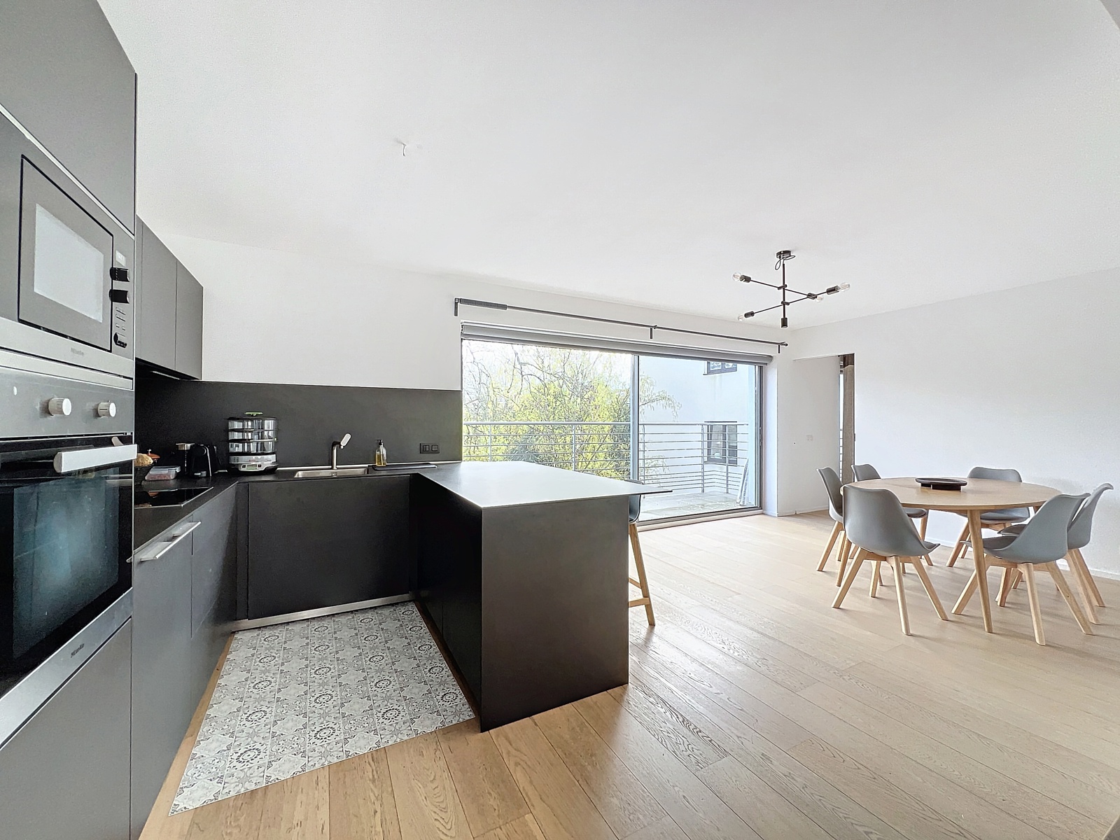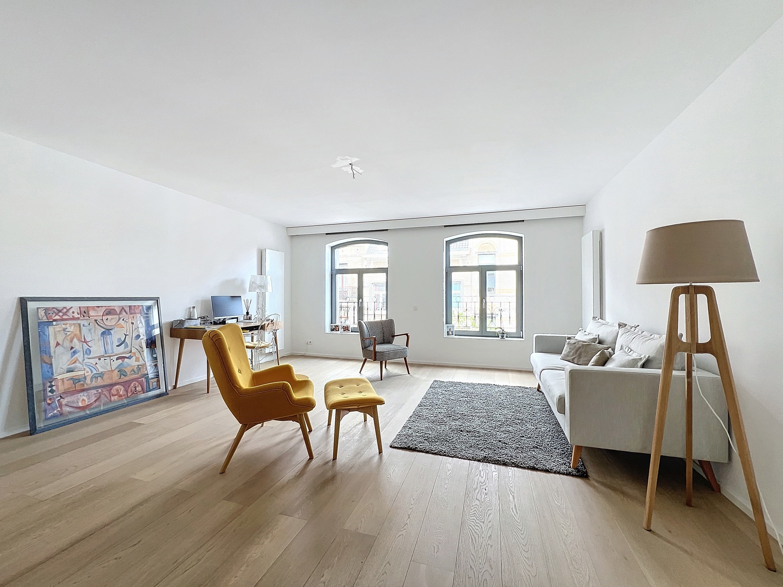 Between Place Brugmann and Place du Chatelain, magnificent apartment of ± 128 m² gross with terrace on the 2nd floor. It is composed as follows: Entrance hall of ± 3.3 m², living room of ± 40.5 m², fully equipped kitchen (Bulthaup) with dining room of ± 23 m² giving access to a terrace of ± 7.5 m² facing East, night hall of ± 2.8 m², separate toilet of ± 1.3 m², master bedroom of ± 13.2 m² with cupboard, 2 bedrooms of ± 12.1 and 9.8 m², full bathroom of ± 6.6 m², shower room of ± 3.3 m². Also: Completely renovated in 2015-2016, double glazing, parquet flooring, video intercom, thermostat, armored door, individual gas boiler, bicycle room, cellar, compliant electricity. PEB: C. To discover as soon as possible!