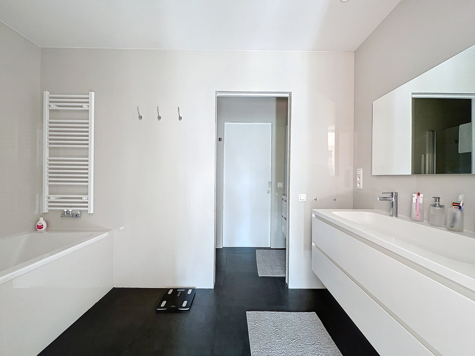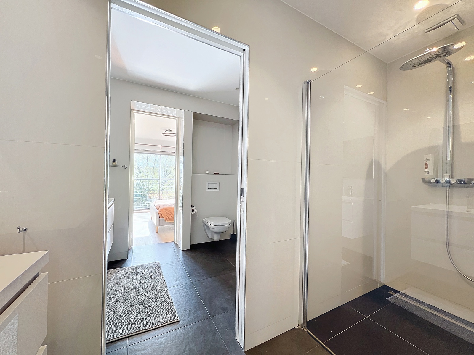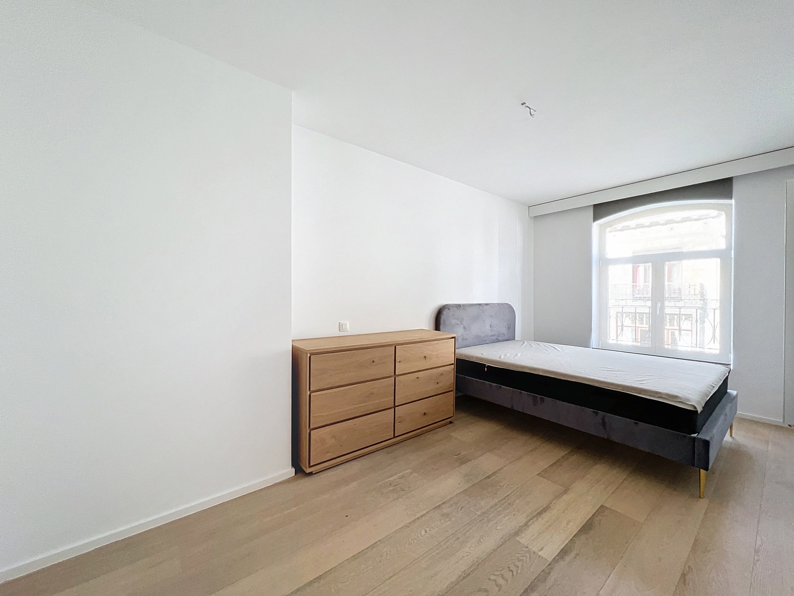 Between Place Brugmann and Place du Chatelain, magnificent apartment of ± 128 m² gross with terrace on the 2nd floor. It is composed as follows: Entrance hall of ± 3.3 m², living room of ± 40.5 m², fully equipped kitchen (Bulthaup) with dining room of ± 23 m² giving access to a terrace of ± 7.5 m² facing East, night hall of ± 2.8 m², separate toilet of ± 1.3 m², master bedroom of ± 13.2 m² with cupboard, 2 bedrooms of ± 12.1 and 9.8 m², full bathroom of ± 6.6 m², shower room of ± 3.3 m². Also: Completely renovated in 2015-2016, double glazing, parquet flooring, video intercom, thermostat, armored door, individual gas boiler, bicycle room, cellar, compliant electricity. PEB: C. To discover as soon as possible!