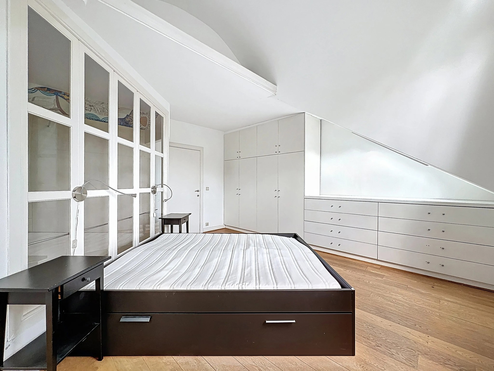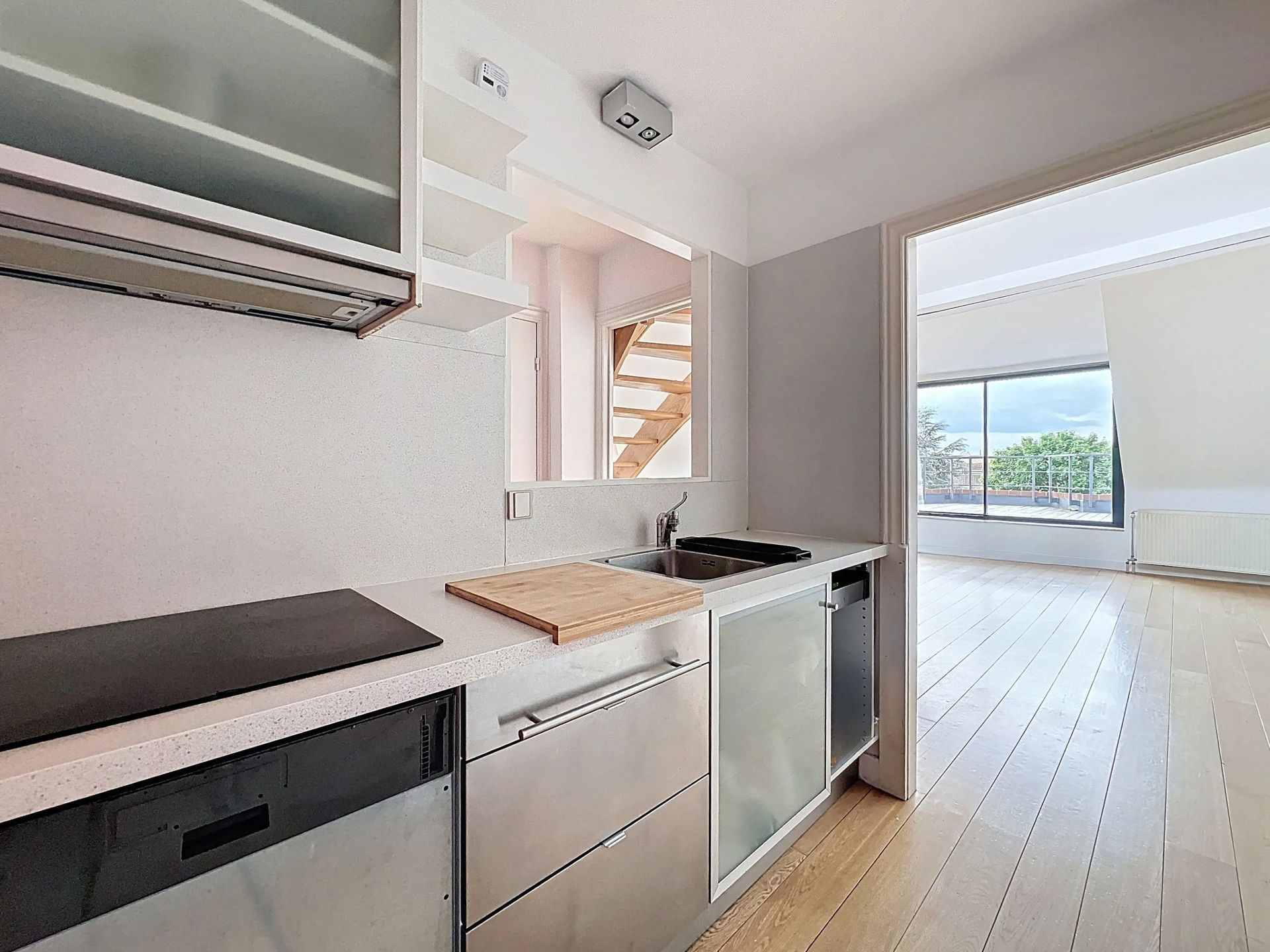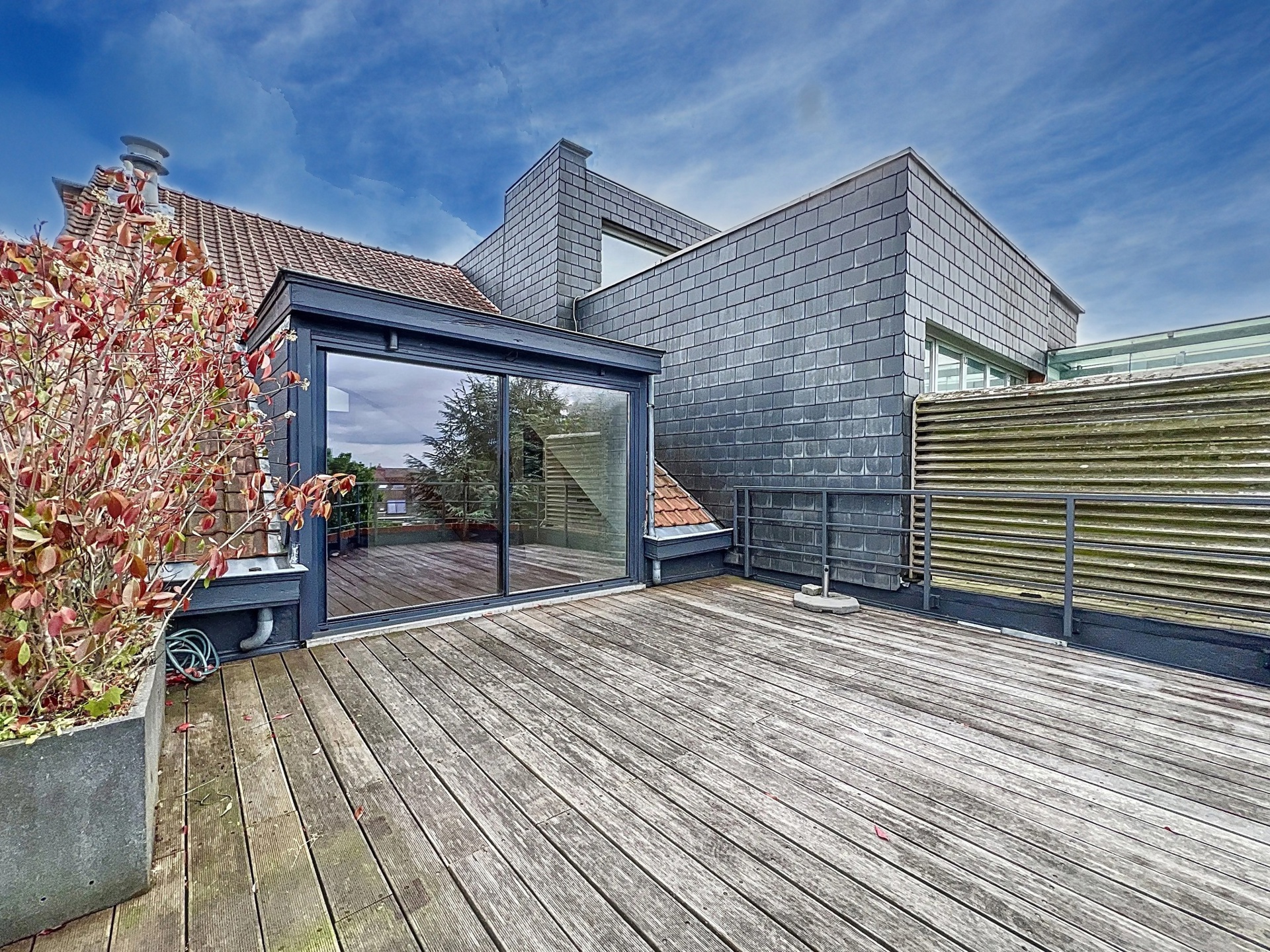 Molière district, superb penthouse of ± 96 m² gross with terrace located on the top floor of a character building. It is composed as follows: Entrance hall of ± 7 m², living room of ± 34.7 m² opening onto a terrace of ± 26 m², equipped kitchen, bedroom of ± 25.4 m² with shower room, second bedroom on the mezzanine of ± 16.1 m², separate toilet of ± 1.3 m², closet/laundry room of ± 1.8 m². Also: Double glazing, parquet flooring, videophone, thermostat, possibility of a second shower room, individual gas boiler, compliant electricity, cellar. Possibility of a second shower room. PEB: F. To discover as soon as possible!