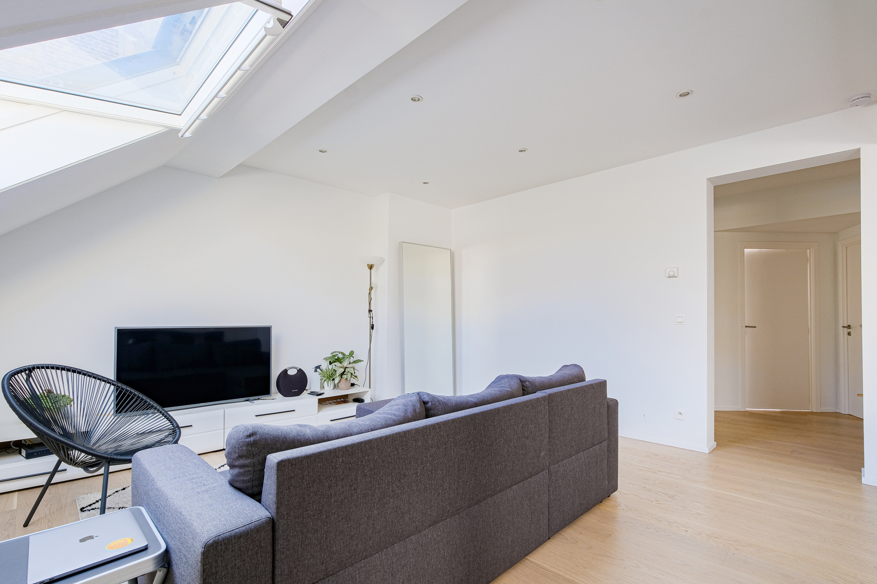 SOLD! Parvis Saint-Pierre, superb apartment of ± 75 m² gross in a small building completely renovated in 2021. It is composed as follows: Entrance hall, living room of ± 30 m², fully equipped American kitchen, 2 large bedrooms of ± 15 and 14.5 m², bathroom. Also: Double glazing, laundry room with washing machine and dryer included, individual gas boiler, standard electricity, bike room, garbage room, cellar. Low charges! PEB: F (done before renovations). To discover as soon as possible! IPI 509.889