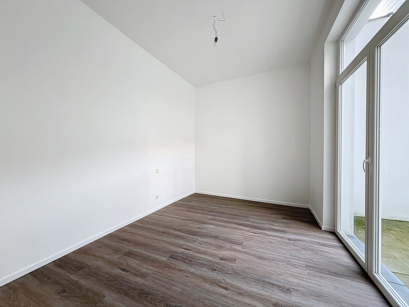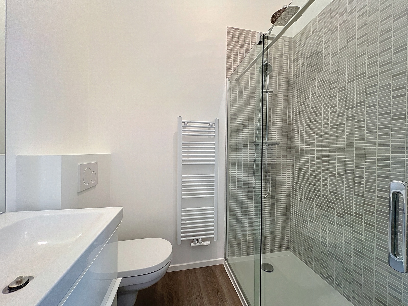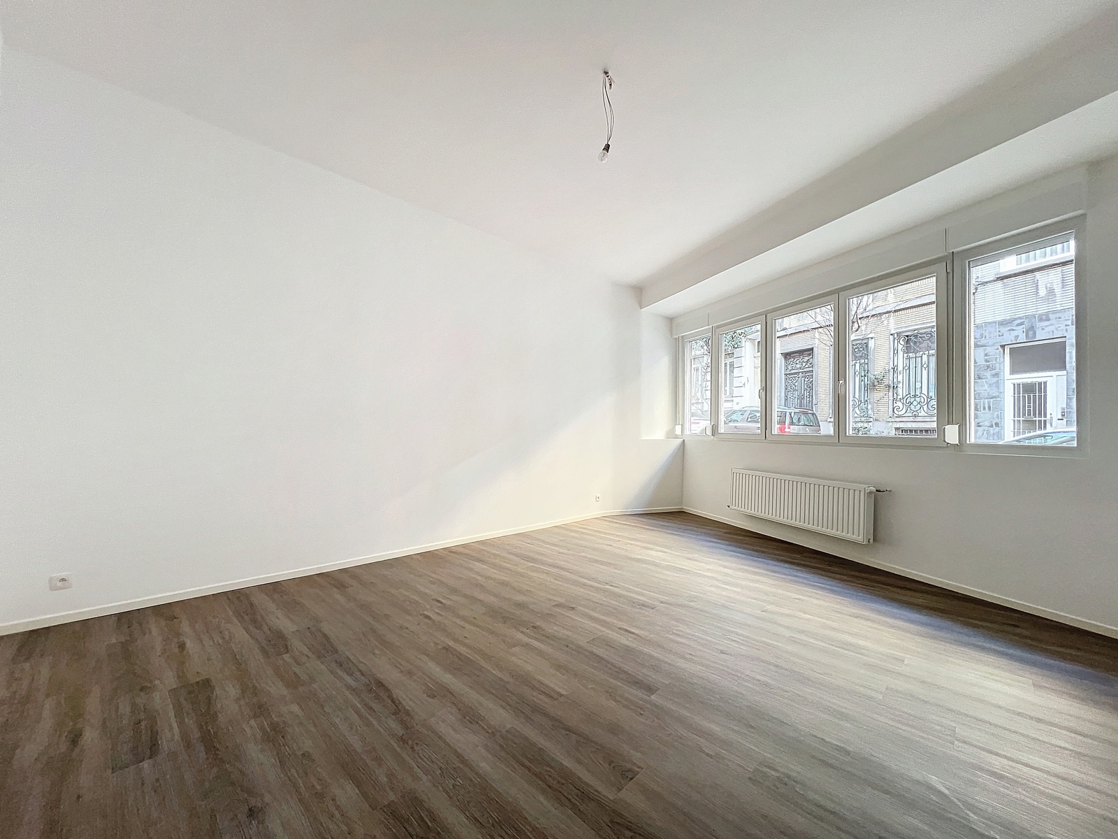 UNDER OPTION! Madou district, superb fully renovated apartment of ± 120 m² gross in a small building. It is composed as follows: Entrance hall of ± 6.5 m², cloakroom and separate toilet, living room of ± 25 m², fully equipped kitchen of ± 16.5 m² with dining area, master bedroom of ± 23.5 m² (bedroom, dressing room, shower room and wc), second bedroom of ± 14.7 m², shower room, courtyard of ± 21.5 m² facing south. Also: Double glazing, laundry room, individual gas boiler, front shutters, standard electricity, cellar. Low charges! PEB before renovation: D+. To discover as soon as possible!