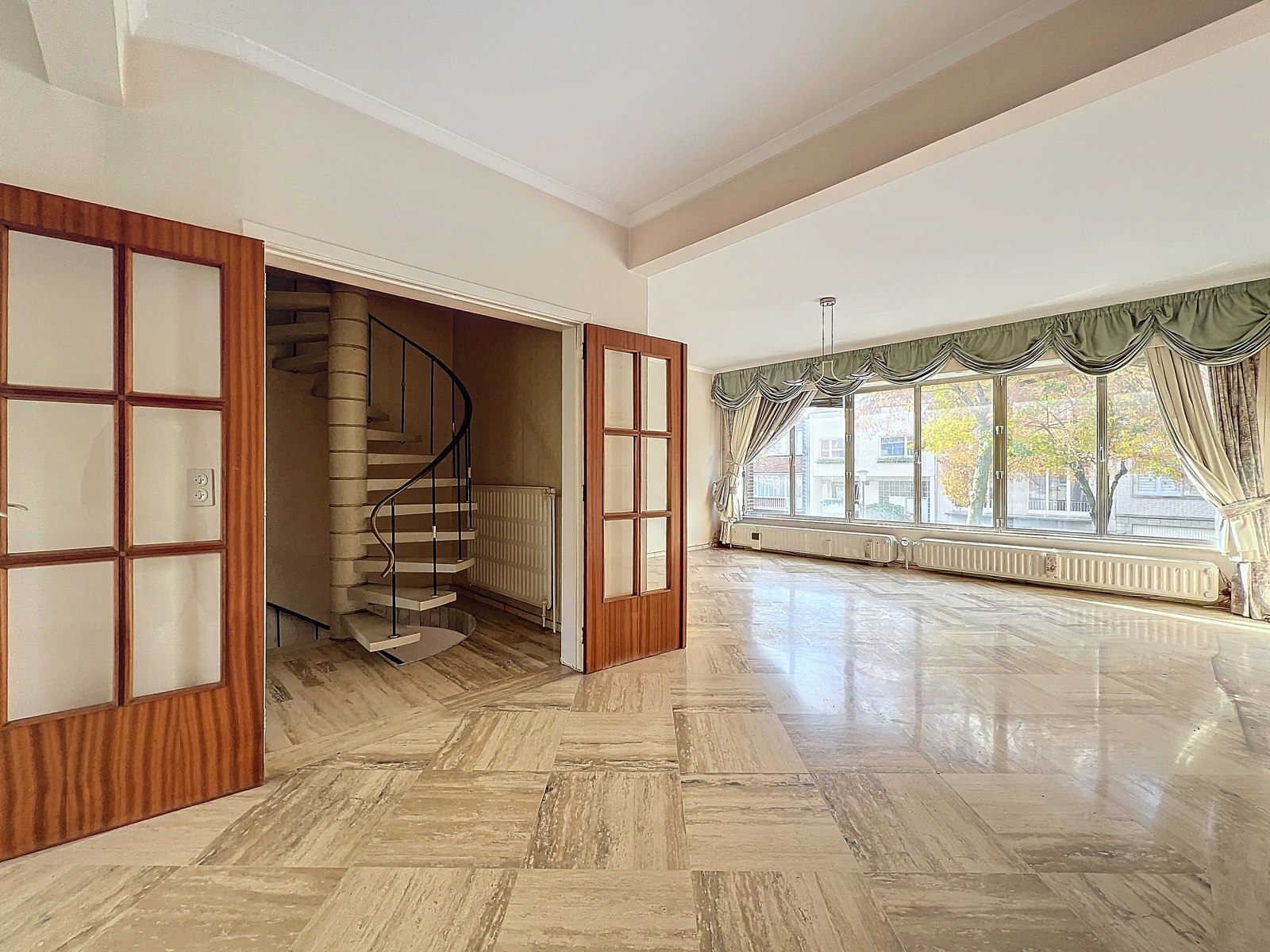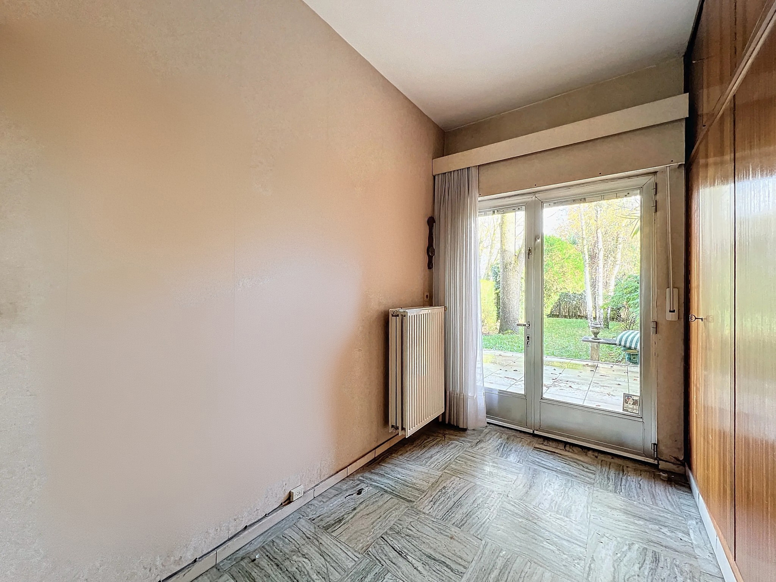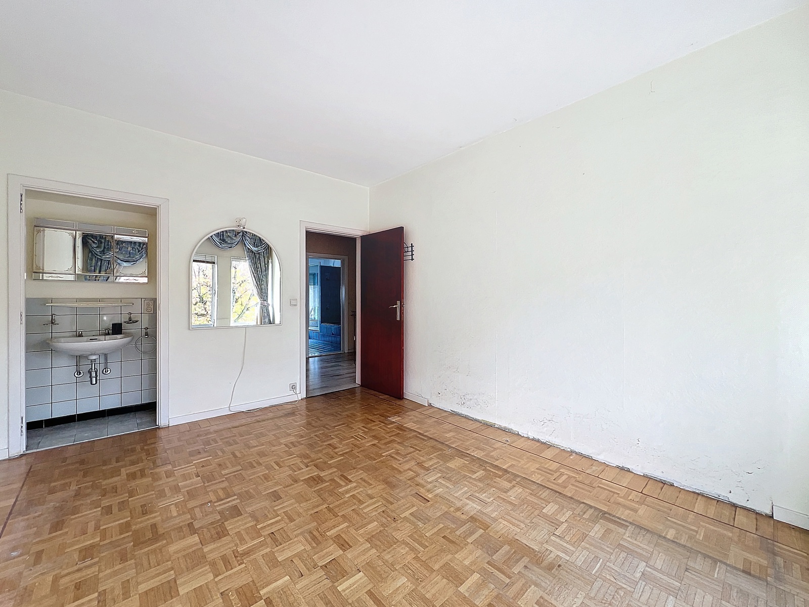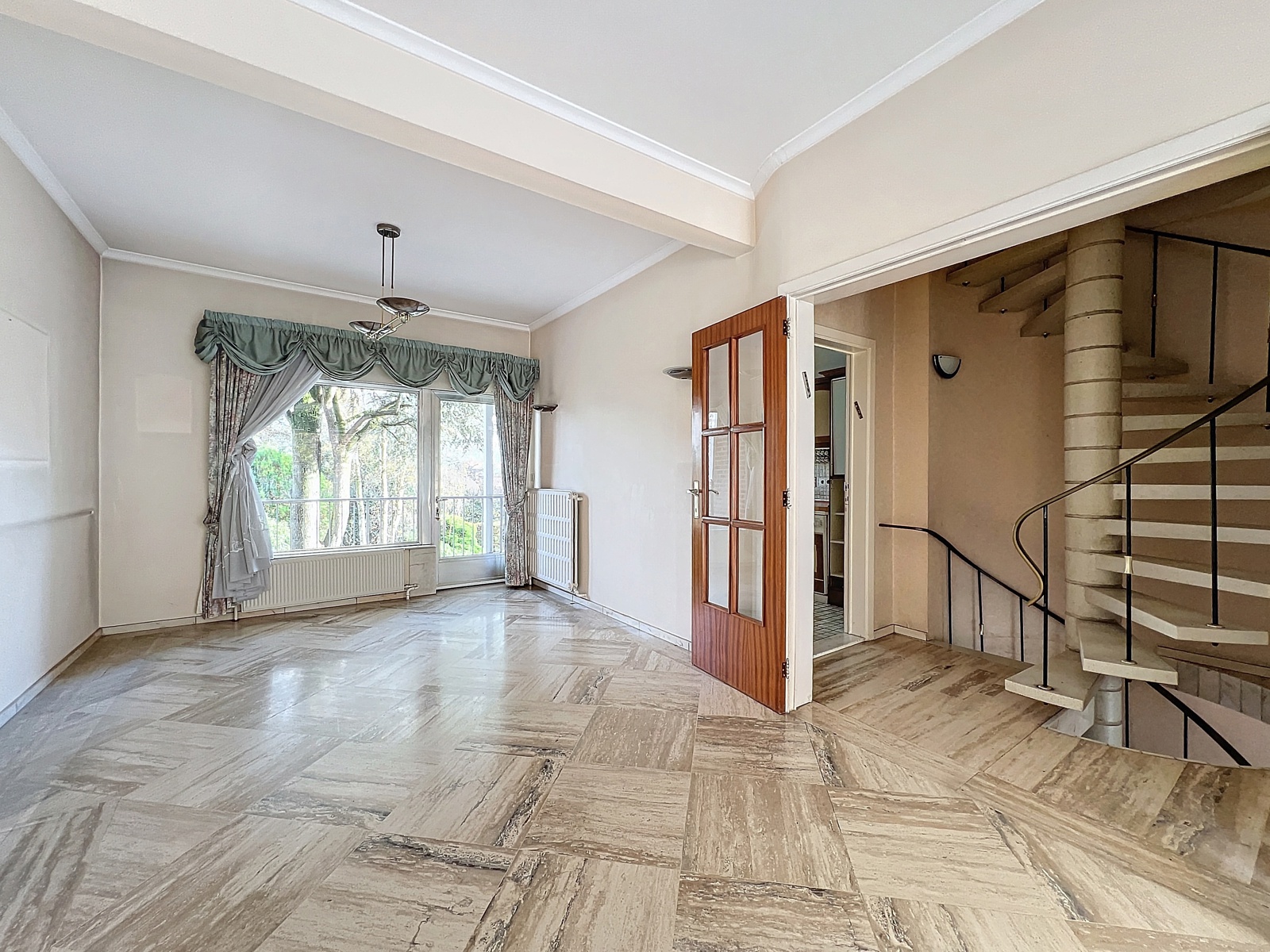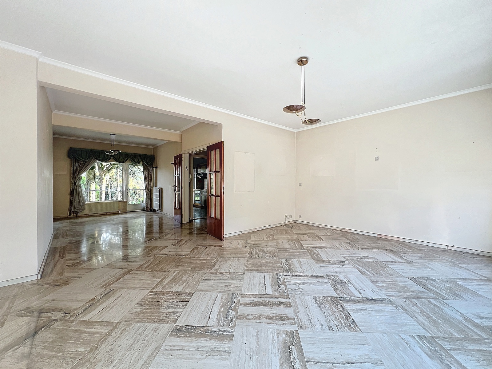 Uccle town hall, superb house to renovate of ± 169 m² gross with garden. It is composed as follows: entrance hall of ± 15.5 m², living room of ± 24.2 m², dining room of ± 18 m² opening onto a terrace of ± 7.5 m² facing East, kitchen of ± 7 m², garden of ± 140 m² facing East with a terrace area of ± 19 m², 3 bedrooms of ± 14.5, 10 and 9.5 m², bathroom of ± 7 m², separate toilet, office space of ± 6.5 m². Also: boiler/laundry room area, garage and 2 outdoor parking spaces, old double glazing, oil boiler, non-compliant electricity. PEB: G. To discover as soon as possible!