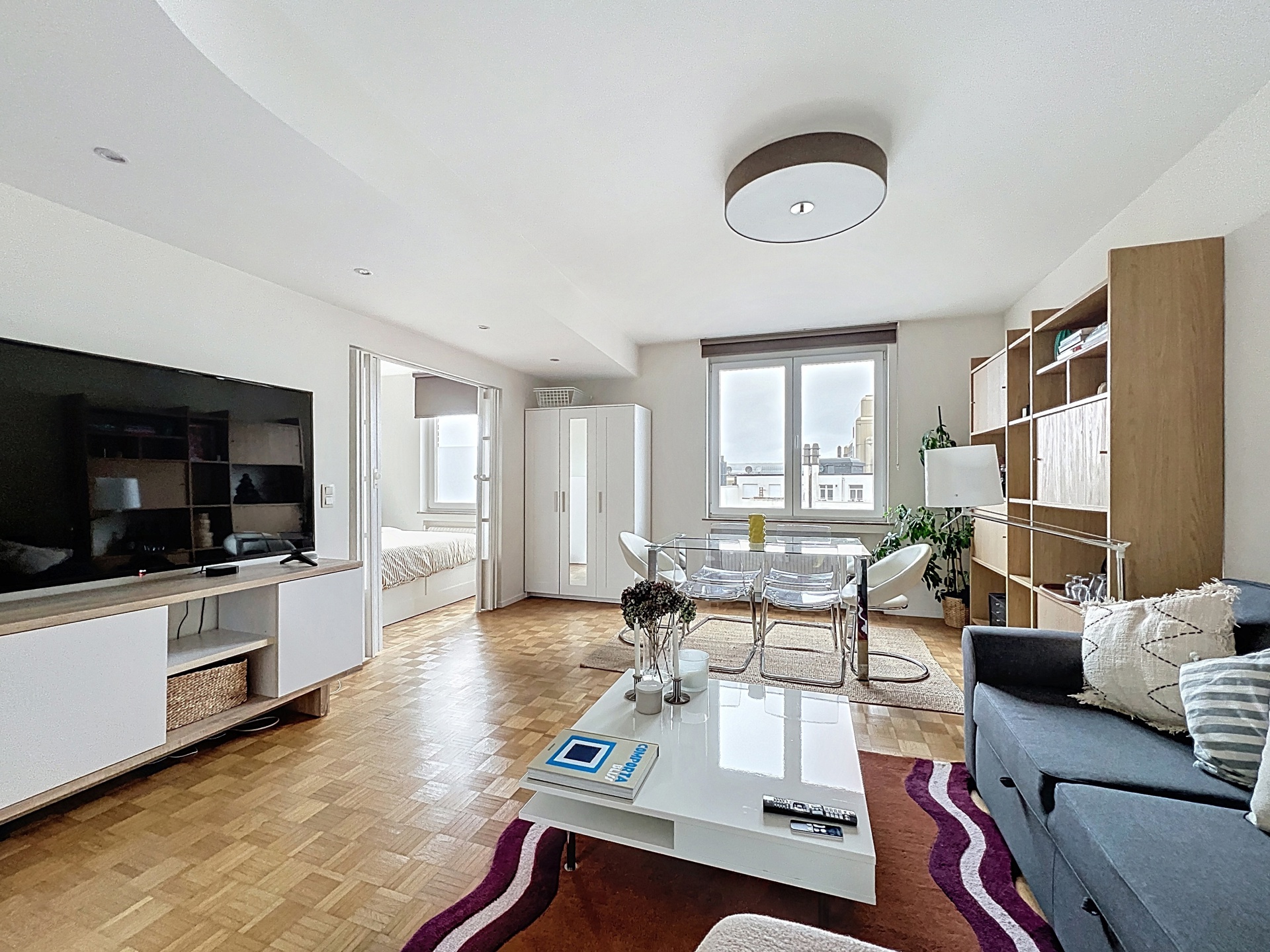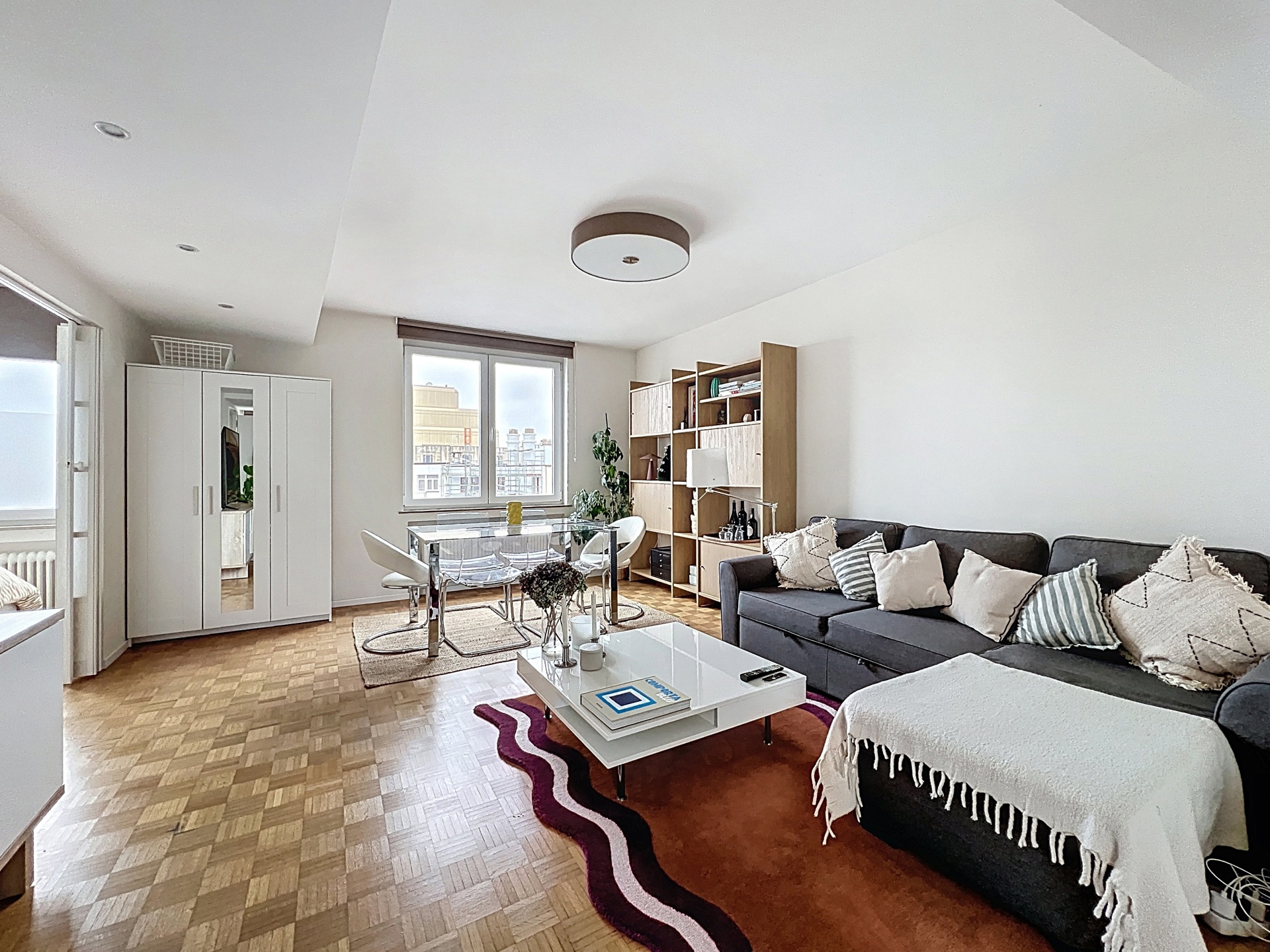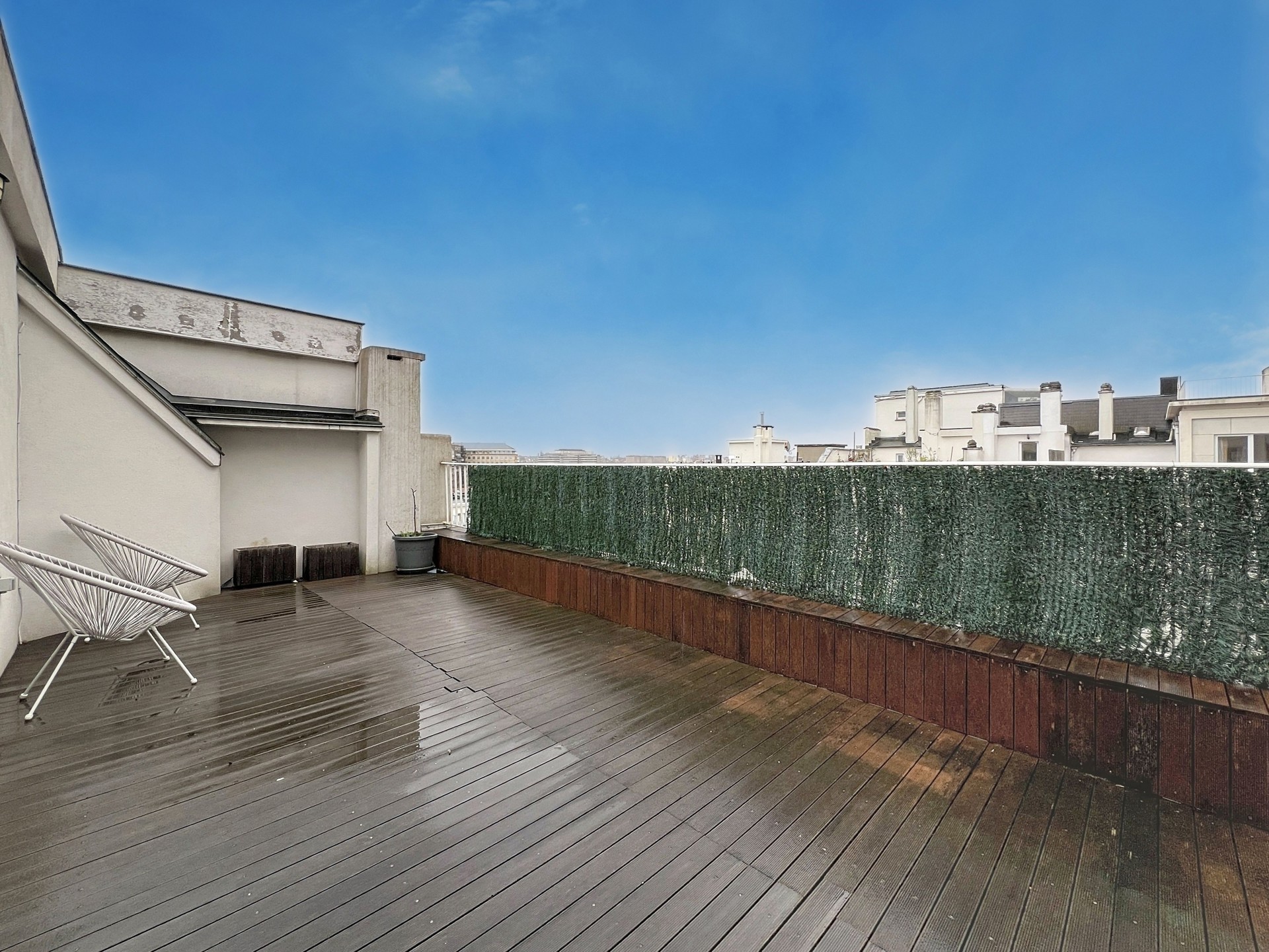 Cinquantenaire, superbe penthouse de ± 53 m² bruts avec grande terrasse au 9ème étage. Il se compose comme suit :