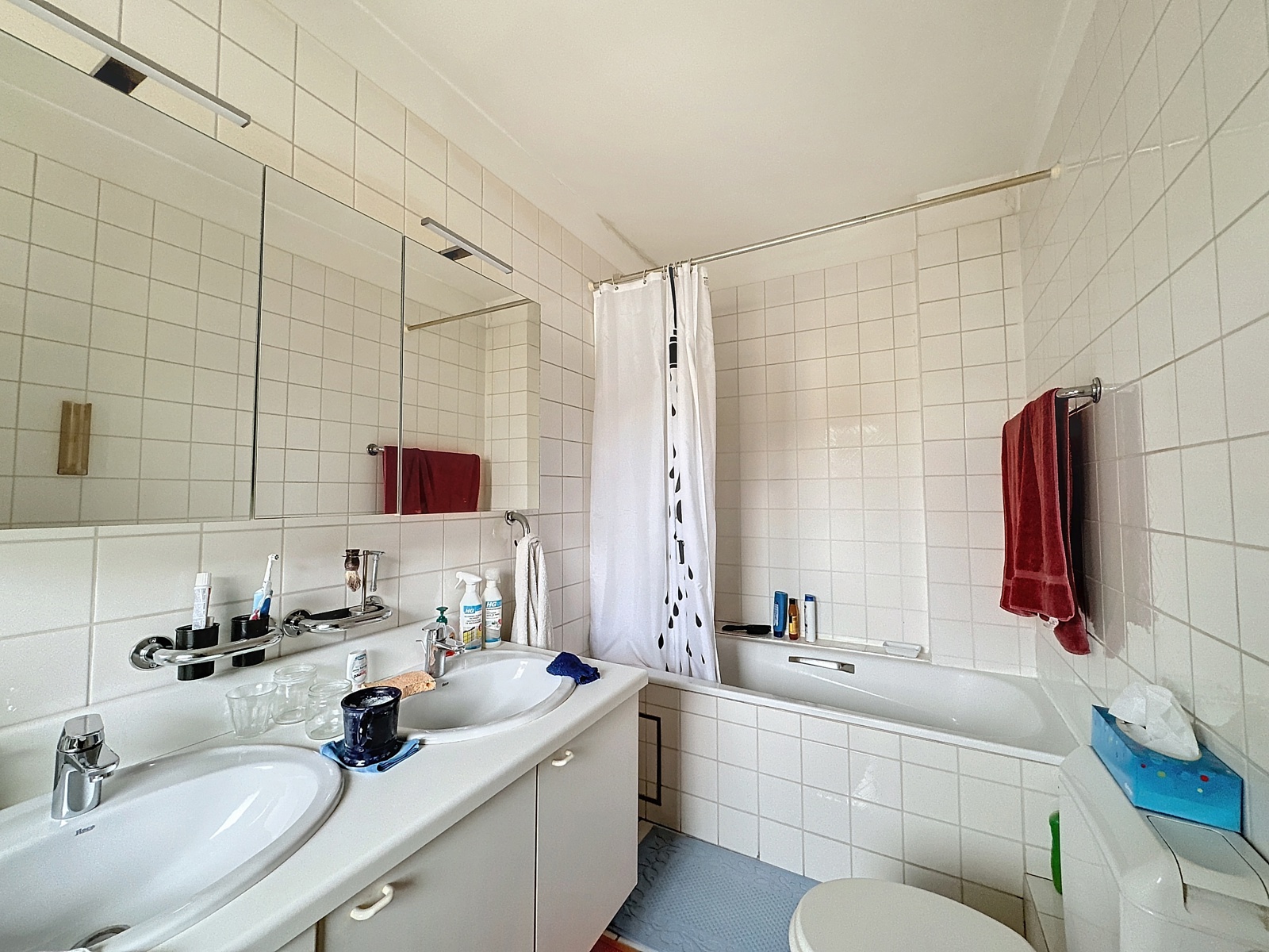 Hall d’entrée avec espace vestiaire, agréable pièce de vie de ± 38 m², cuisine de ± 8.6 m² donnant accès à la terrasse de ± 19 m², hall de ± 11 m², chambre de ± 13.2 m² avec salle de bain attenante de ± 4.5 m², deux chambres à coucher de ± 10.8 et 10.7 m², salle de bain de ± 3.8 m², espace buanderie et toilette séparée.