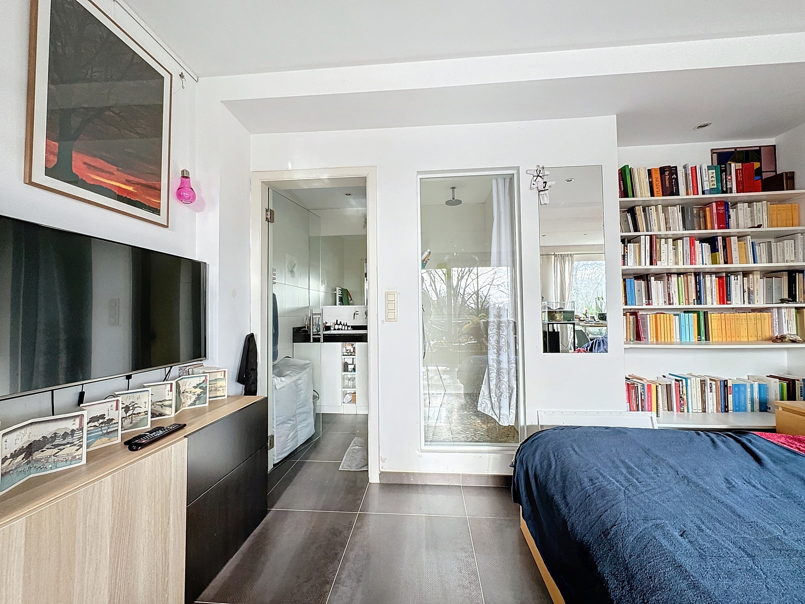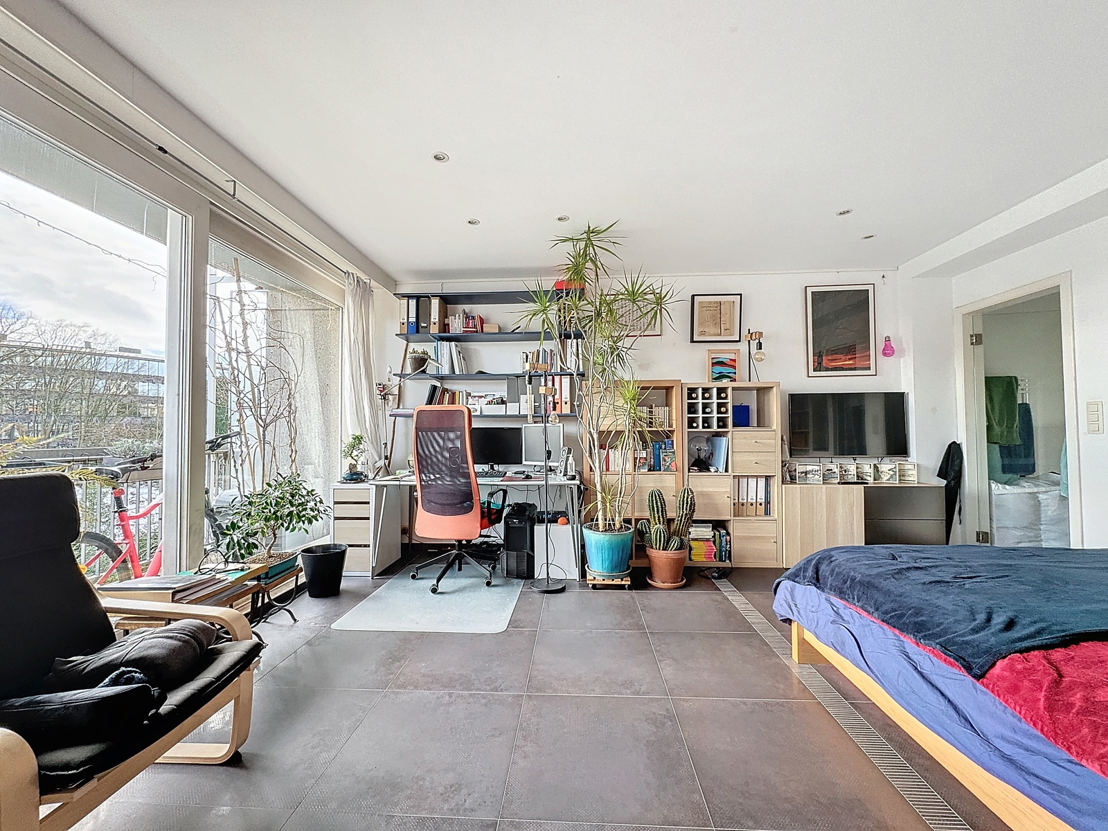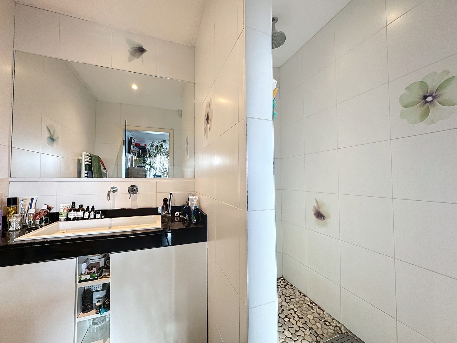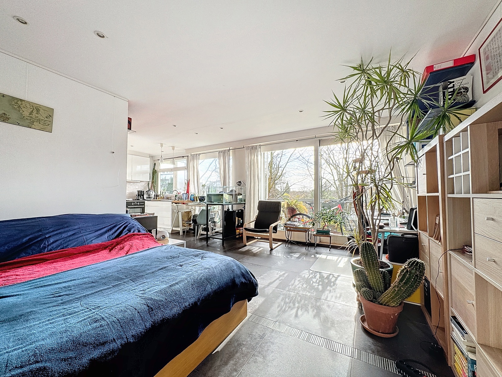 Watermael-Boitsfort, dans un quartier calme et résidentiel, lumineux studio de ± 47 m² bruts avec une jolie terrasse orientée plein Sud. Il se compose comme suit :