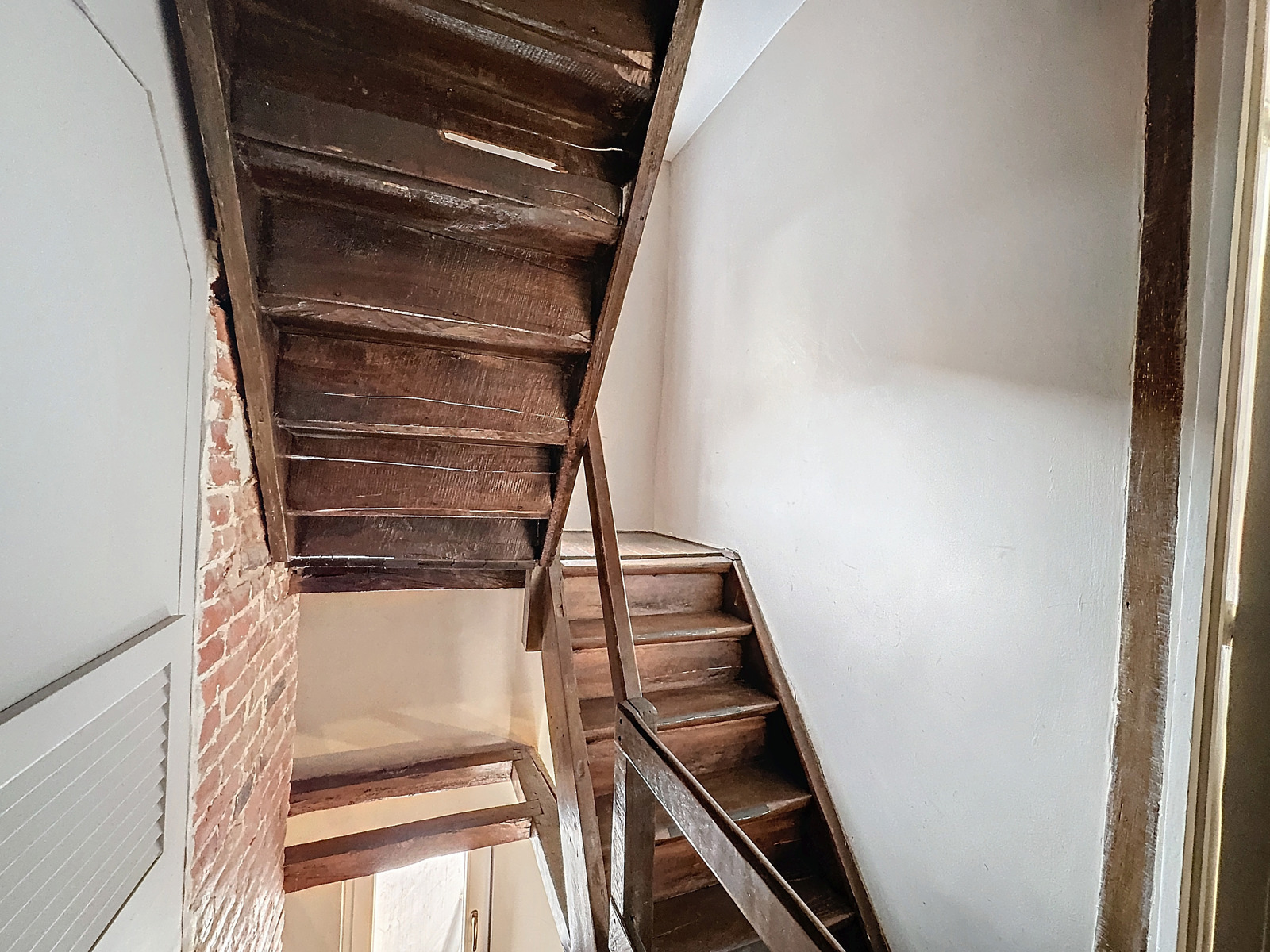 Quartier du Sablon, dans une rue calme et peu passante à quelques mètres d'une des plus belles places de Bruxelles, magnifique maison de ± 103 m² bruts construite en 1862. Elle se compose comme suit :