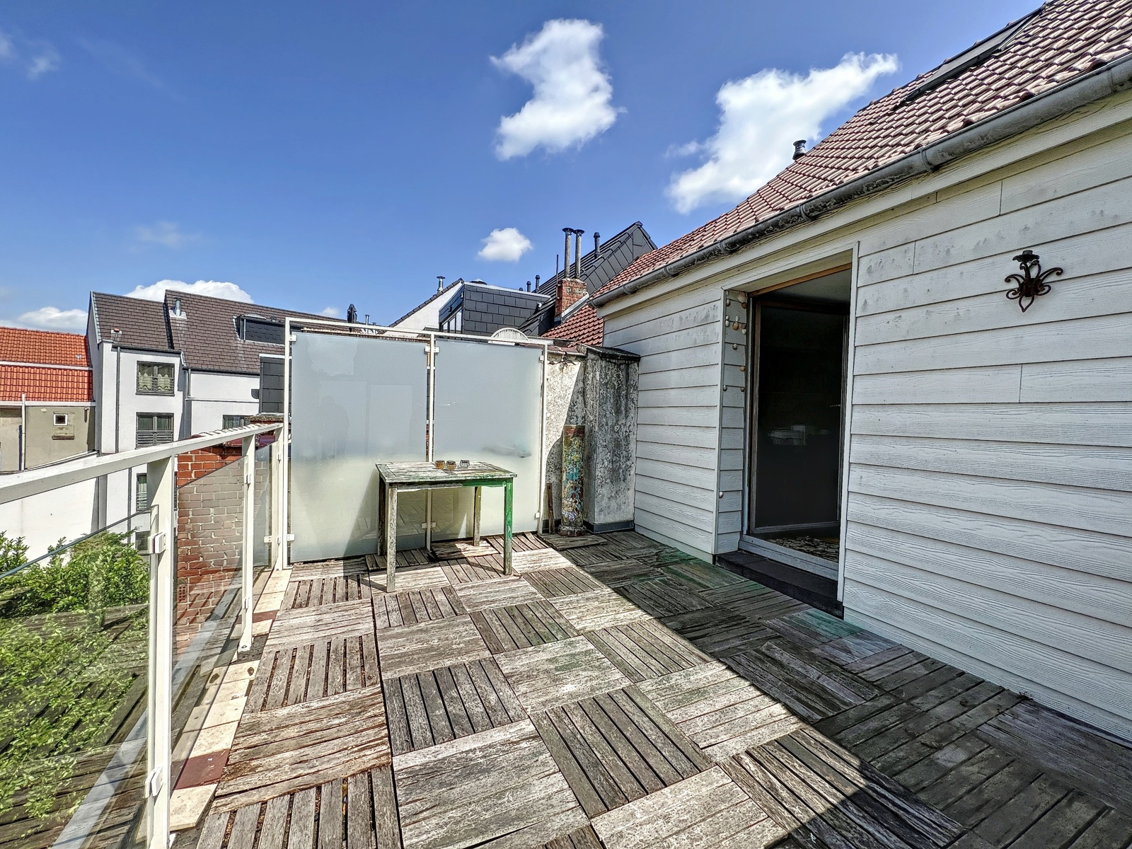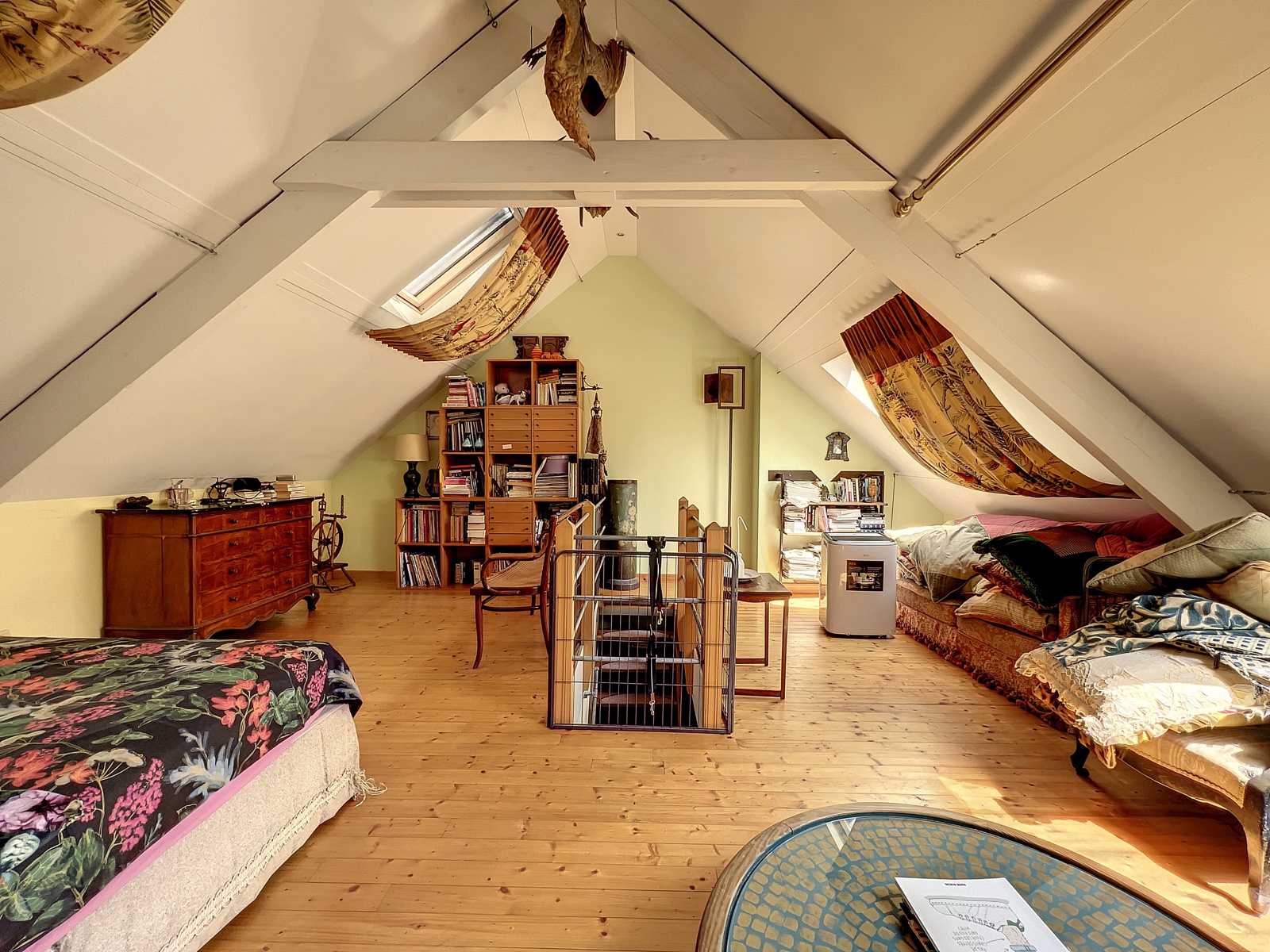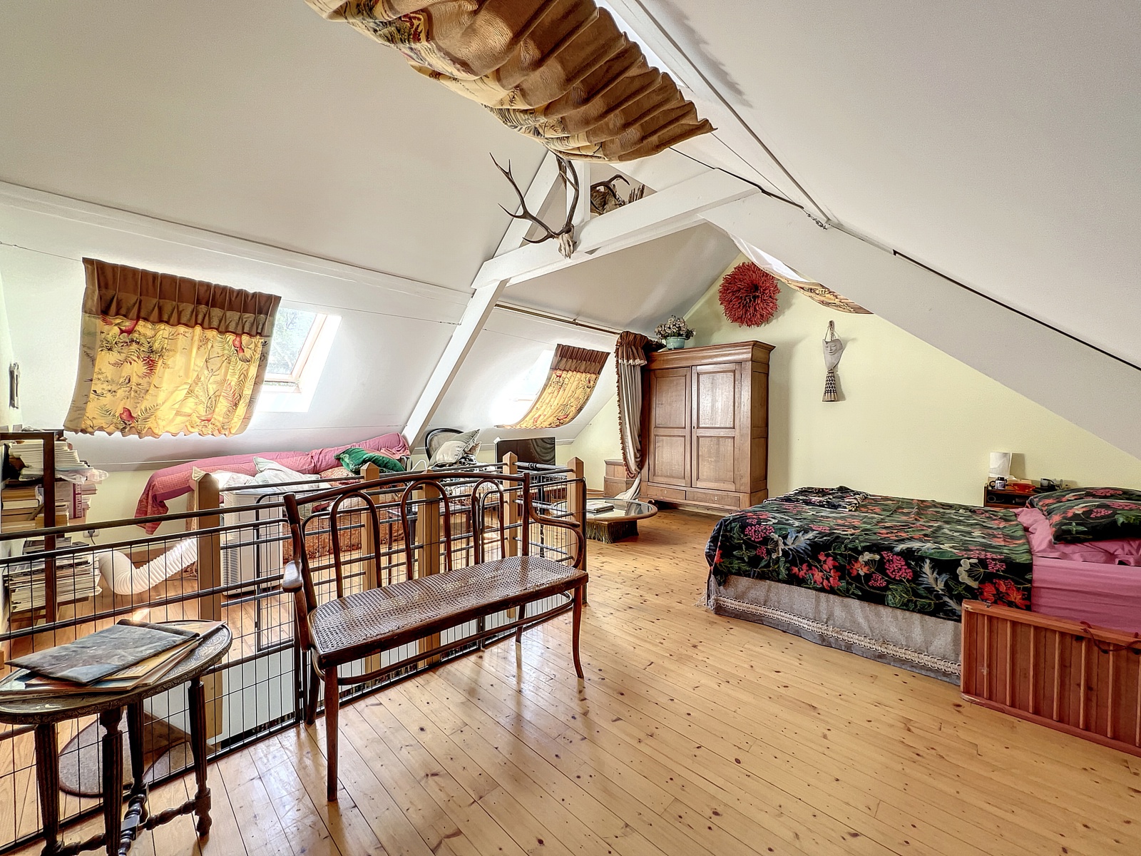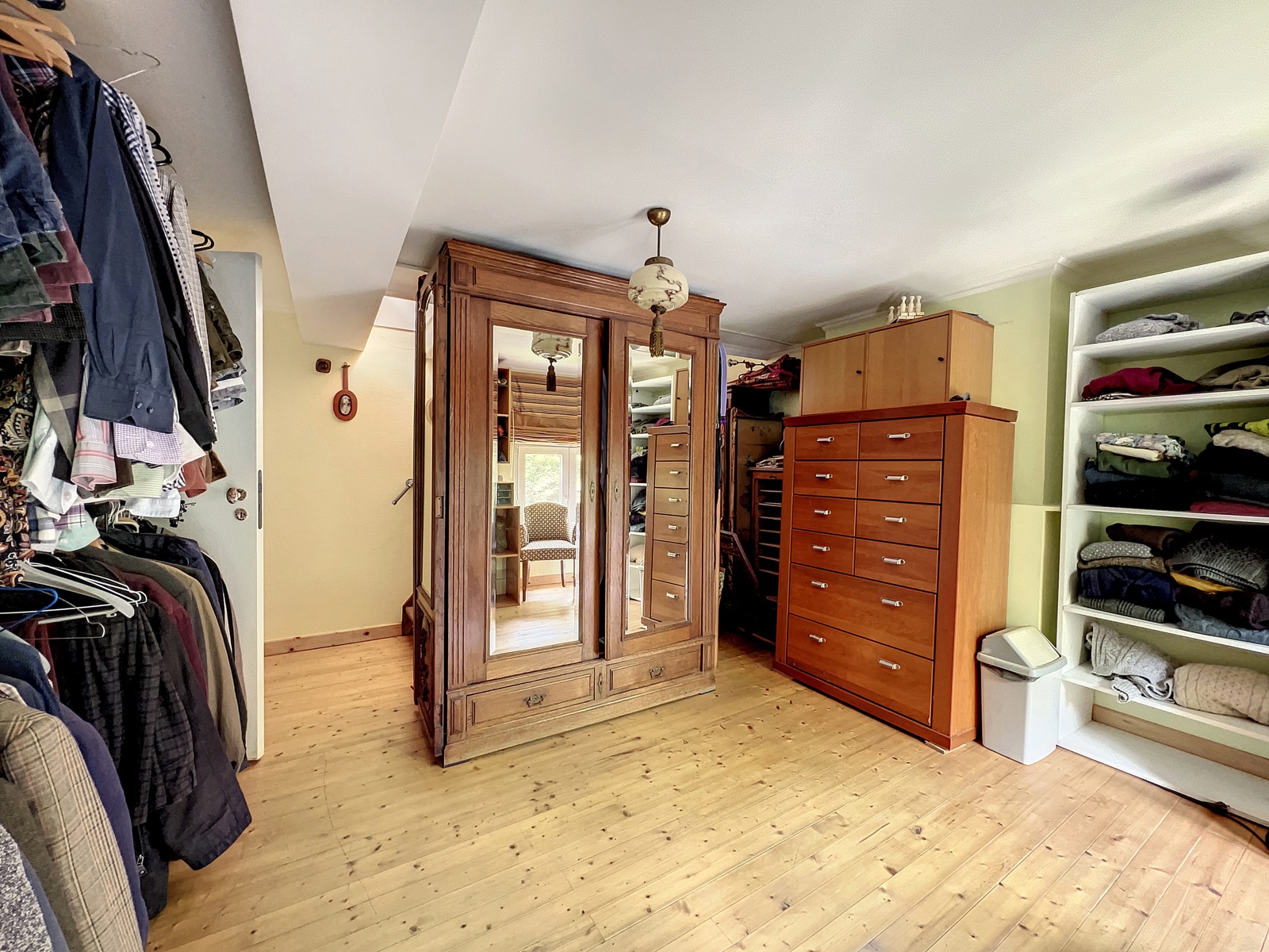 2ème étage : Palier de ± 4.5 m², chambre de ± 15.8 m² donnant accès à une terrasse de ± 16 m² orientée Ouest, dressing de ± 17.1 m² avec accès aux combles, salle de bains de ± 6.5 m².