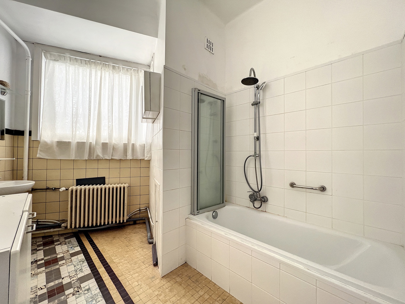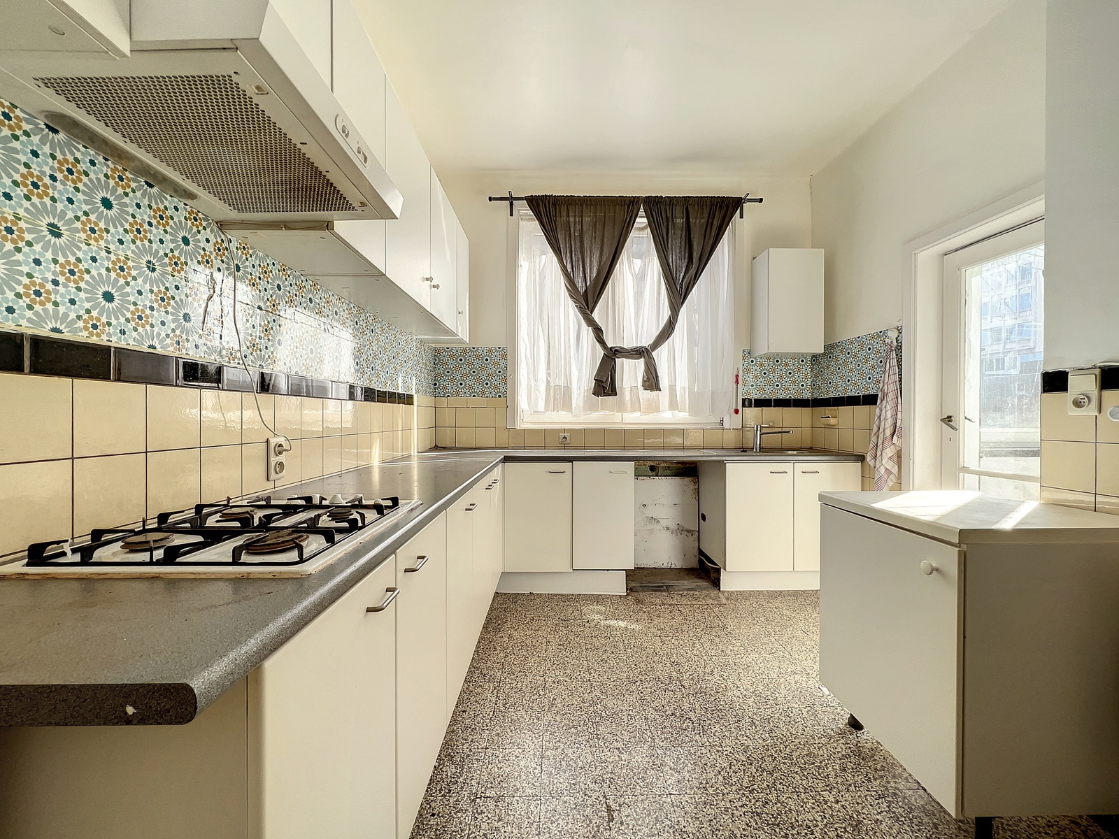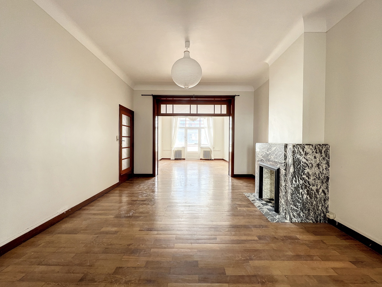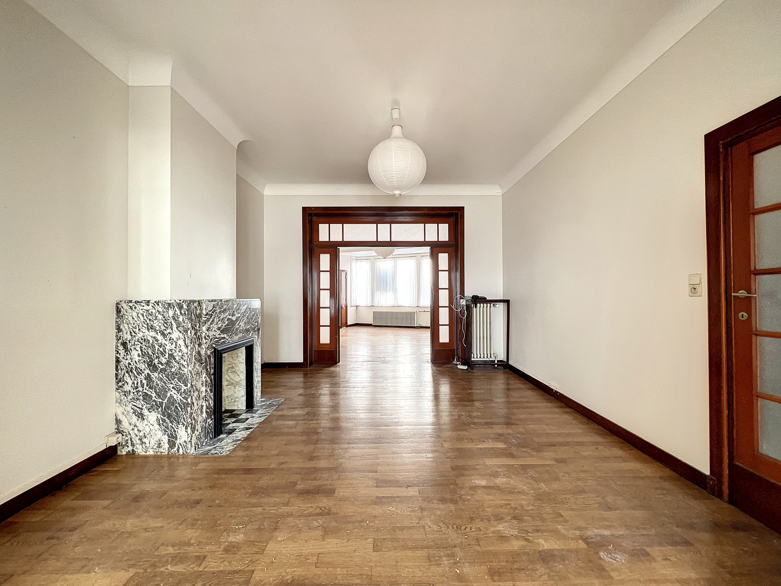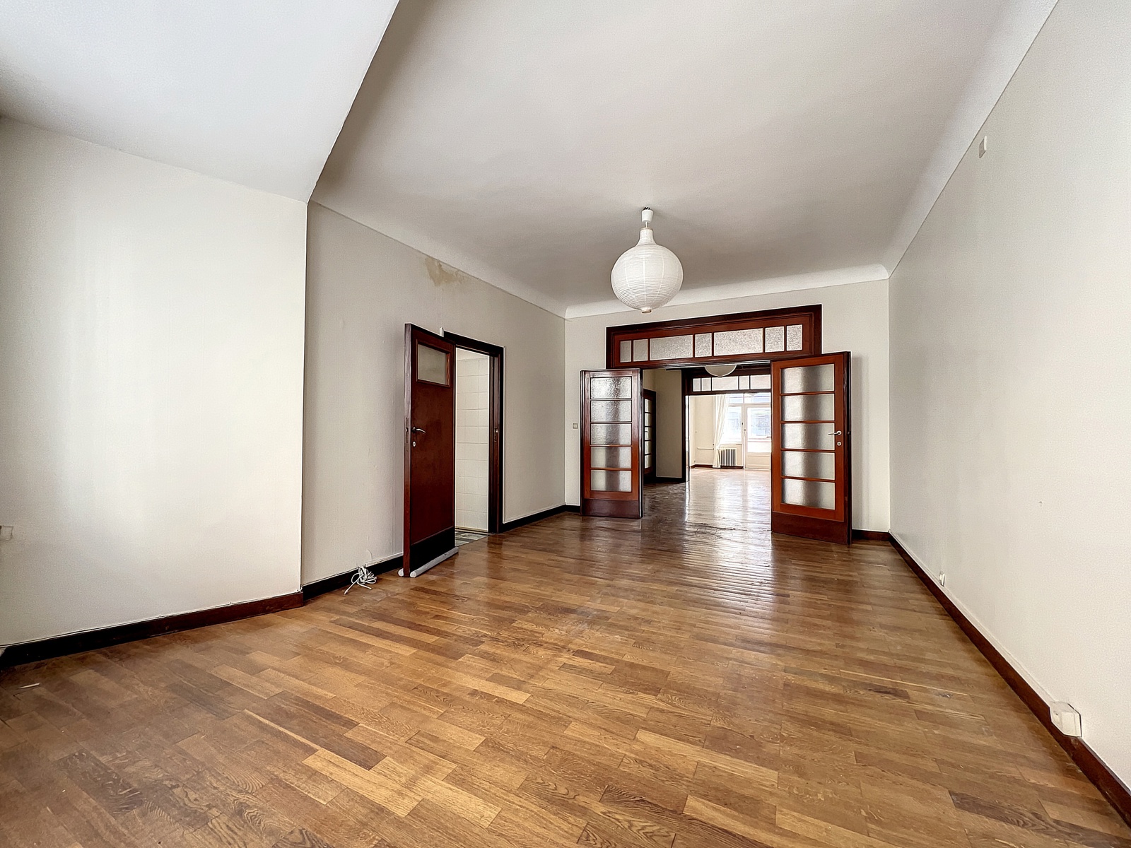 Madou wijk, prachtig te renoveren appartement van ± 100 m² bruto op de bovenste verdieping in een klein gebouw. Het is als volgt samengesteld: Inkomhal van ± 7,3 m², apart toilet, woonkamer van ± 36,7 m², keukenhoek van ± 8 m², 2 slaapkamers van ± 17,1 en 12,3 m² elk met eigen douchekamer, terras van ± 4 m² op het zuiden. Tevens: Dubbel glas, wasruimte, individuele gasketel, kelder. PEB: G. Lage kosten! Om zo snel mogelijk te ontdekken! IPI 509.889