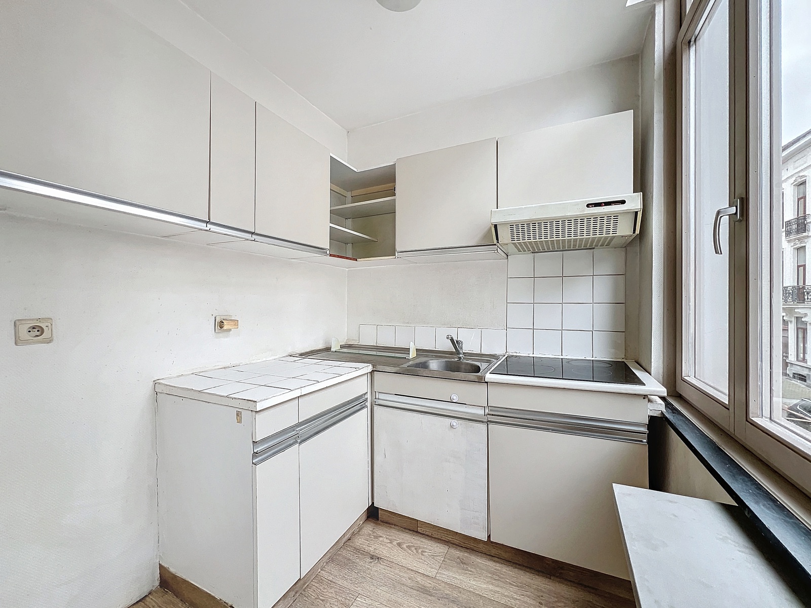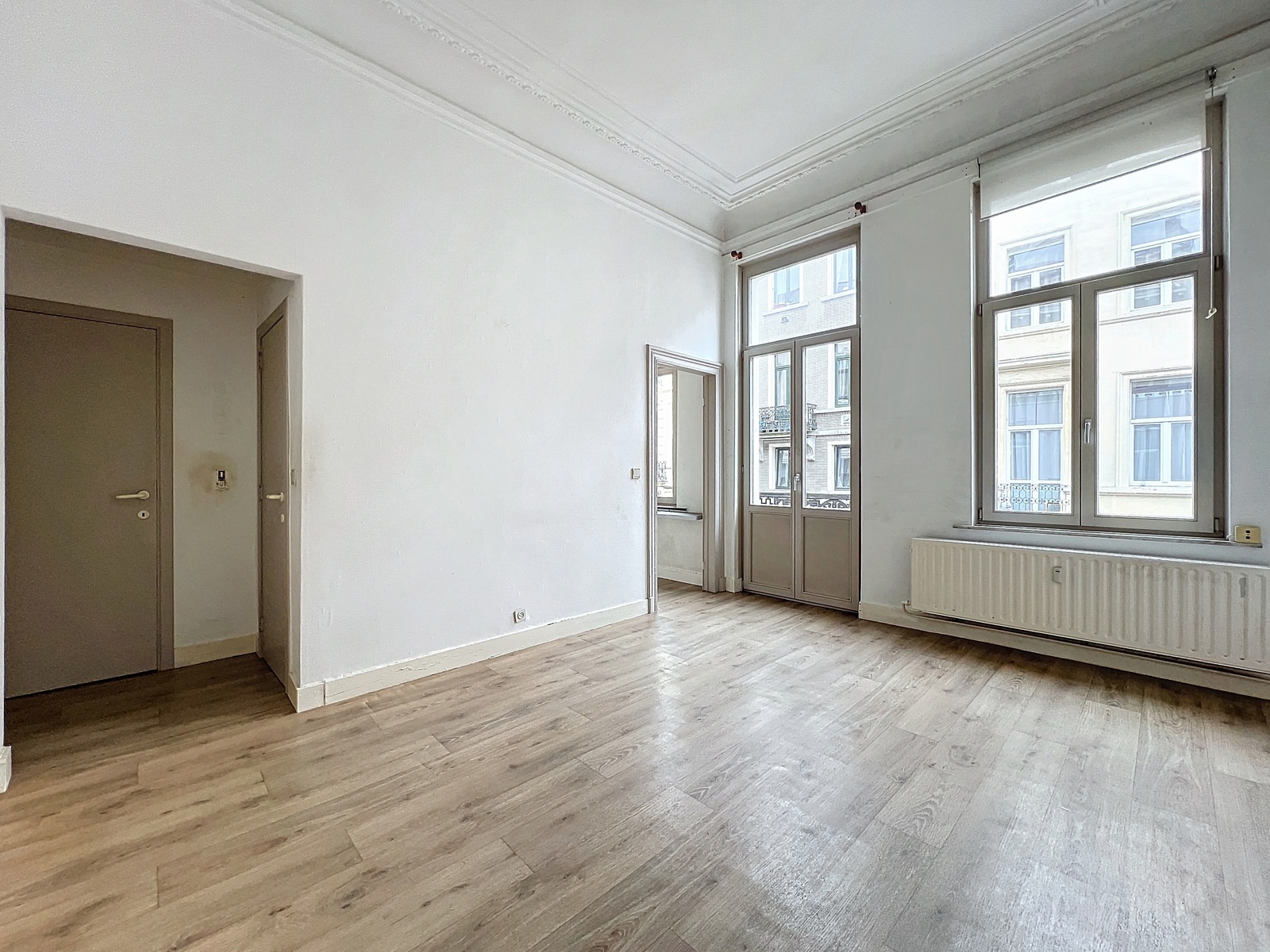 ONDER OPTIE! Op een steenworp afstand van Place Morichar, prachtig te renoveren appartement van ± 45 m² bruto met balkon op de 1e verdieping. Het is als volgt samengesteld: inkomhal, woonkamer van ± 16,1 m² met balkon op het westen, keuken van ± 3,7 m², slaapkamer van ± 16,2 m², badkamer van ± 2,4 m², apart toilet. Ook: dubbele beglazing, houten vloer, intercom, centrale verwarming op gas, niet-conforme elektriciteit, kelder. PEB: D-. Ideaal voor investeerders of starters! Nieuwe vergunning verleend: erkend als studio bij de dienst stedenbouw. Ontdek het snel!