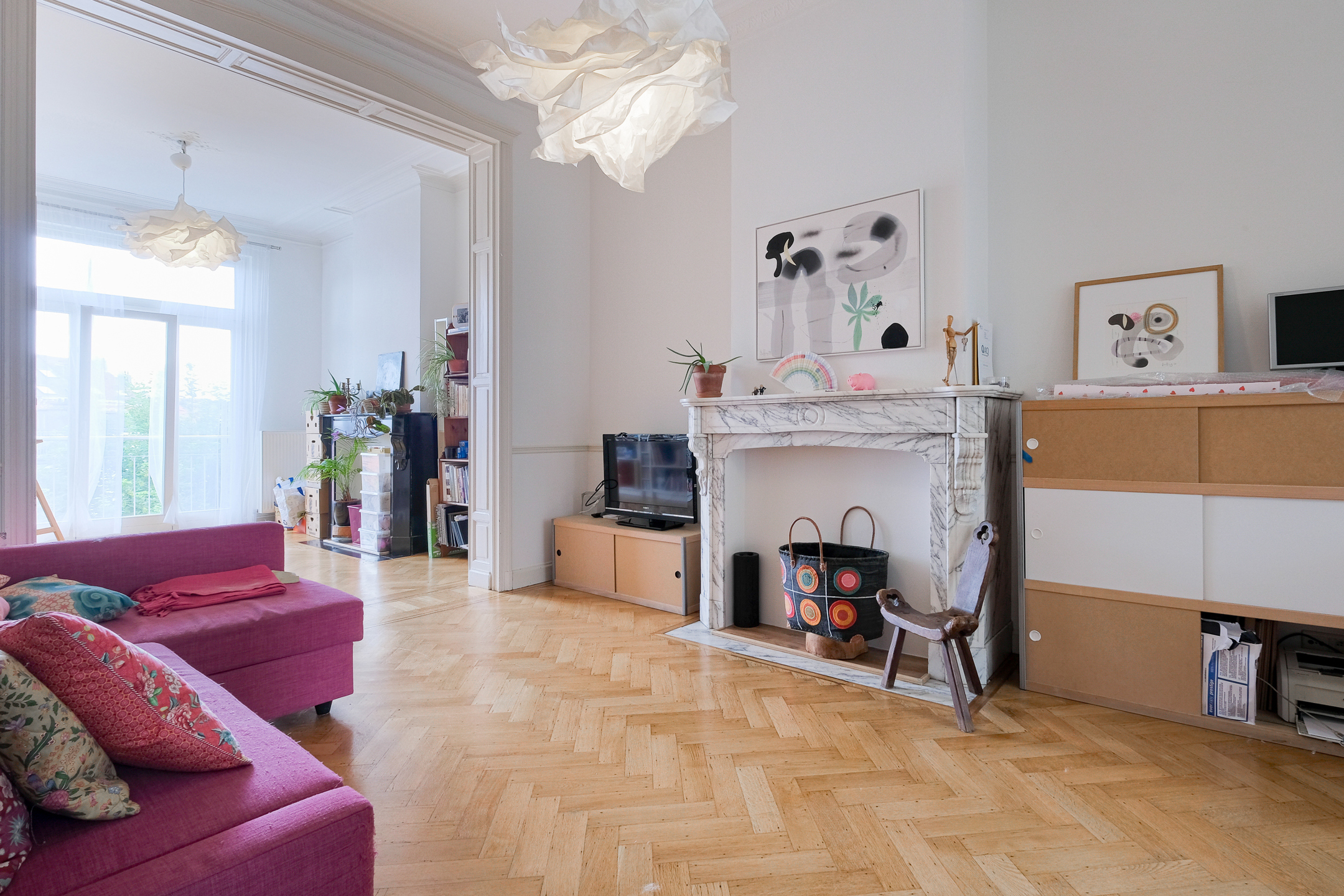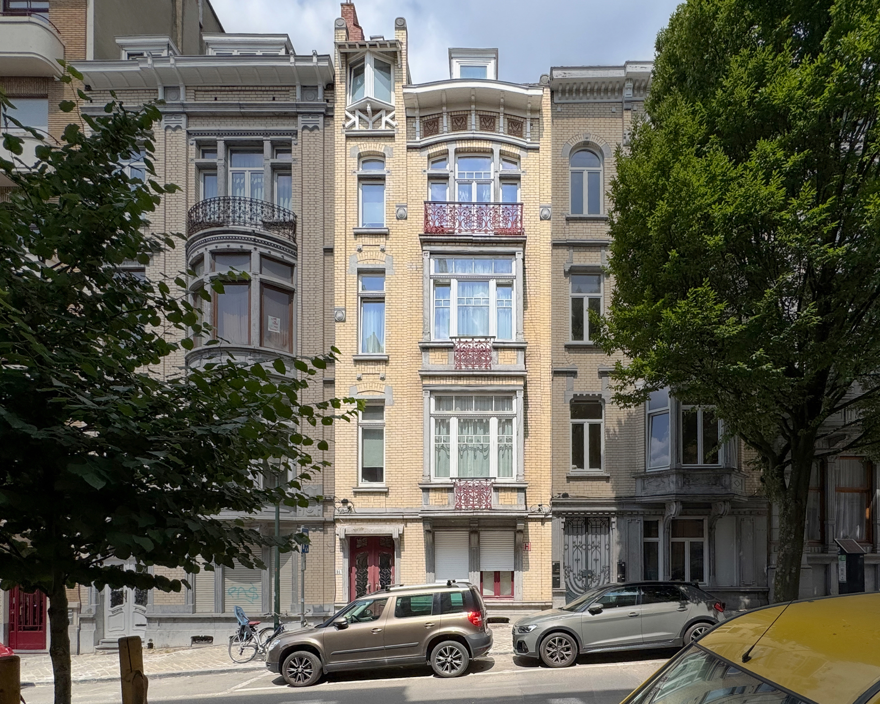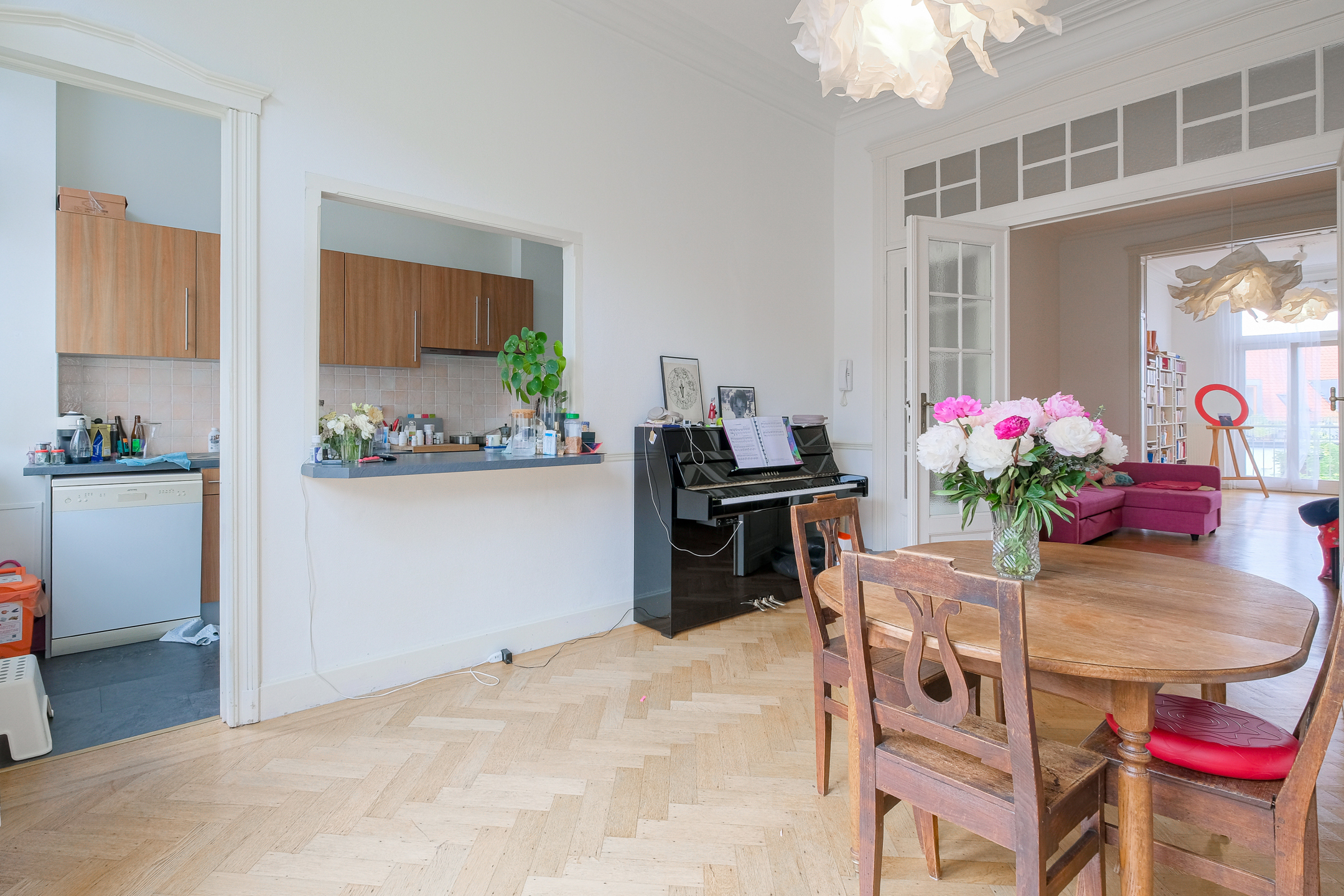 Rue de Savoie, gelegen tussen het Forestpark en het Van Meenenplein – in een prachtig herenhuis in eclectische/art-nouveau stijl uit 1911 – schitterende triplex/penthouse van ongeveer 185 m² bruto met terras, gelegen in een goed onderhouden kleine mede-eigendom.