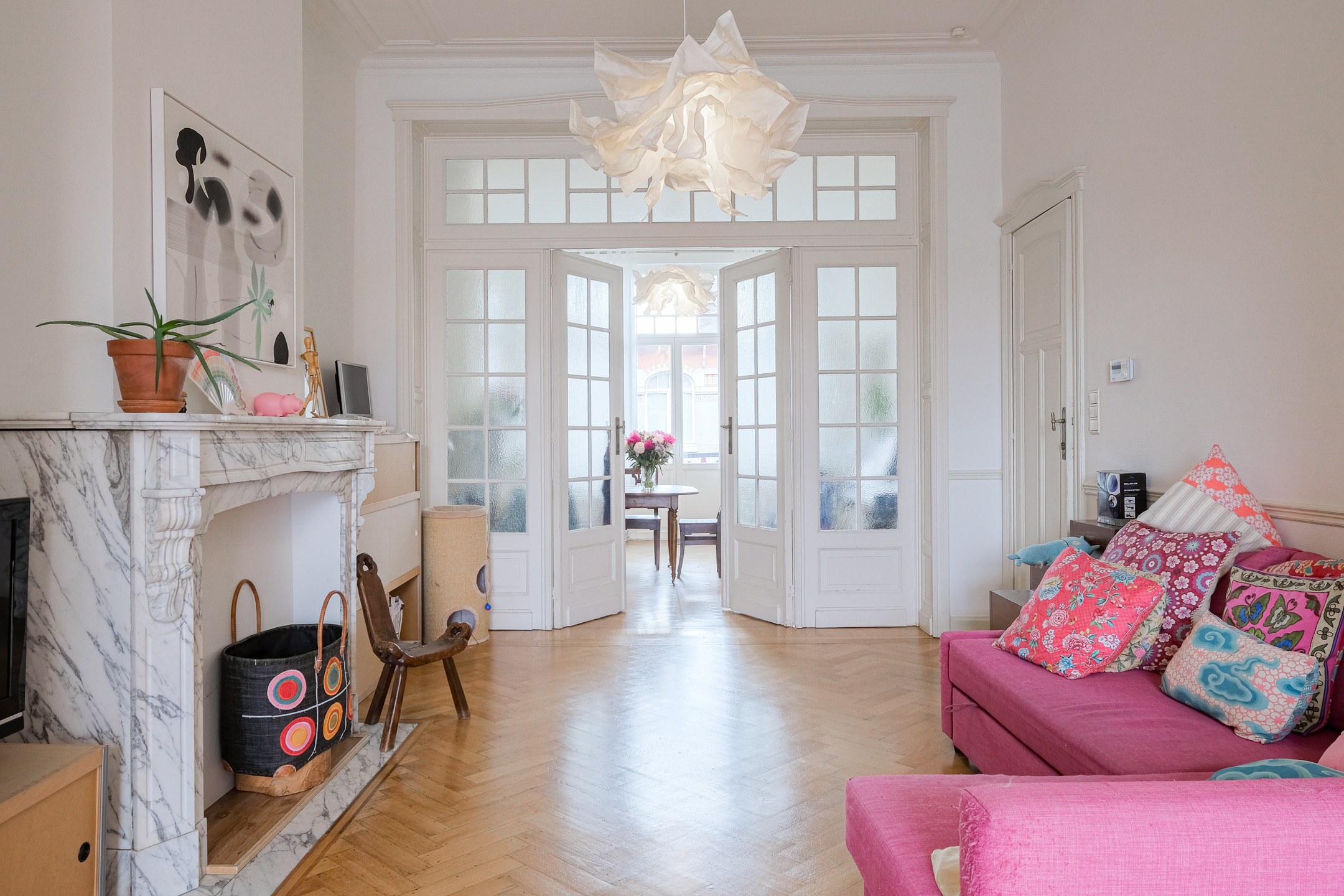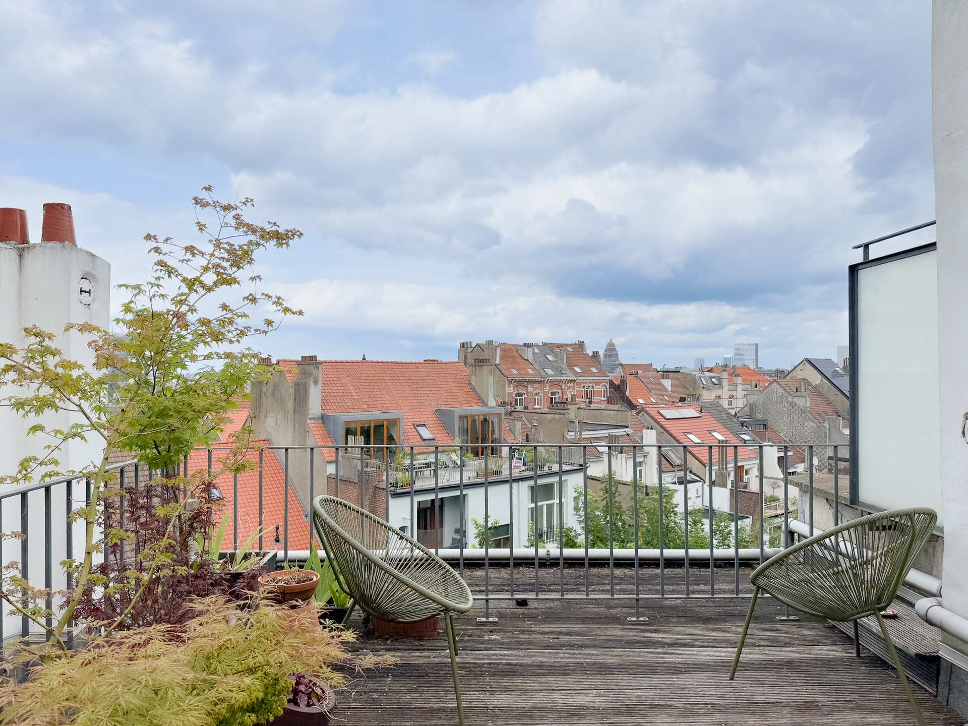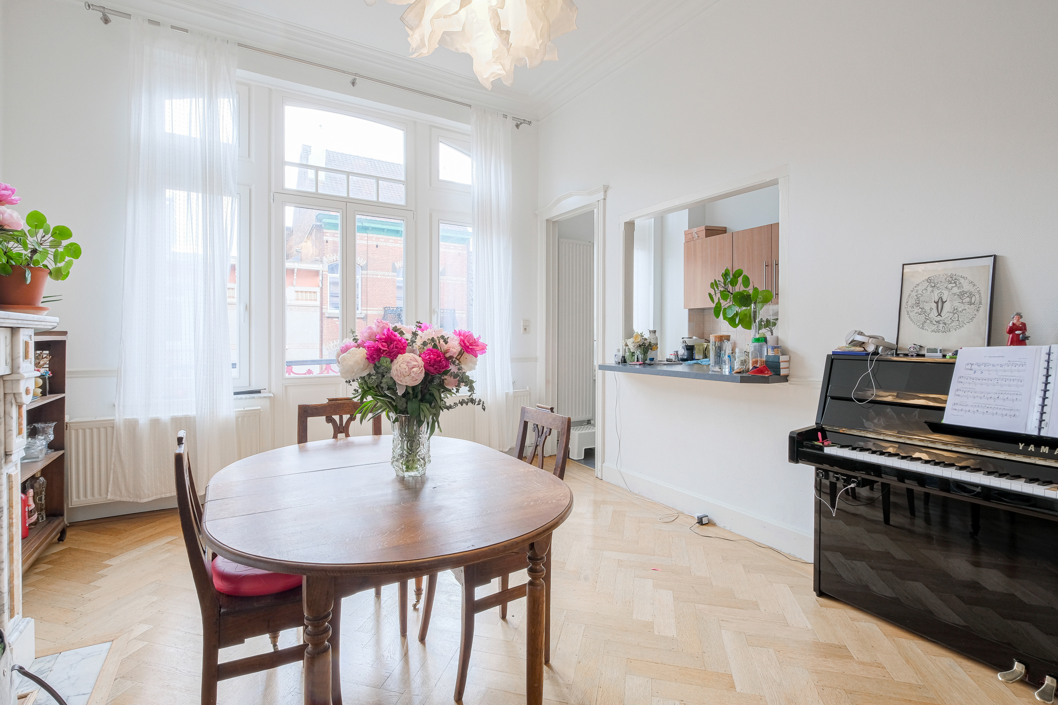 Rue de Savoie, gelegen tussen het Forestpark en het Van Meenenplein – in een prachtig herenhuis in eclectische/art-nouveau stijl uit 1911 – schitterende triplex/penthouse van ongeveer 185 m² bruto met terras, gelegen in een goed onderhouden kleine mede-eigendom.