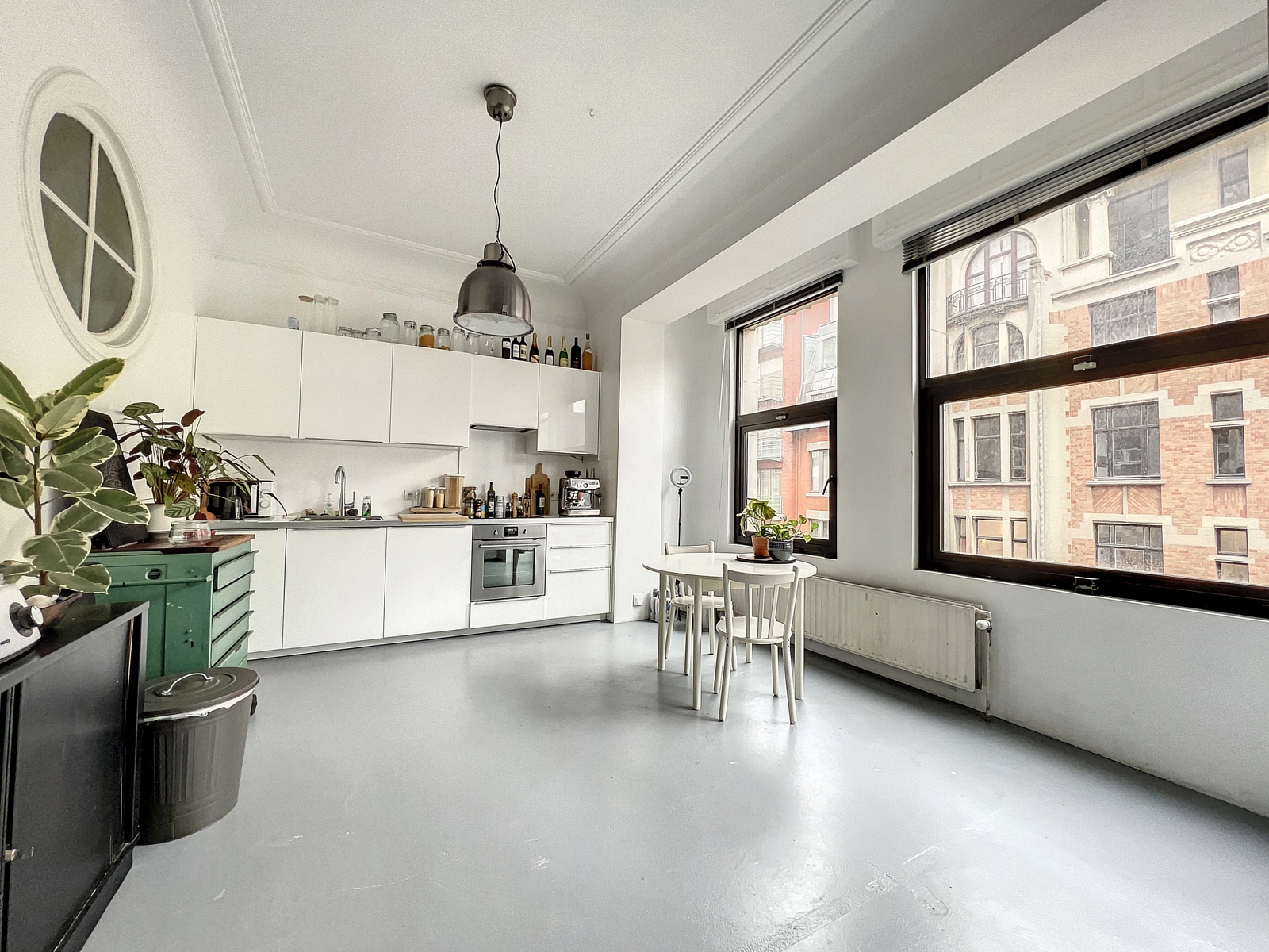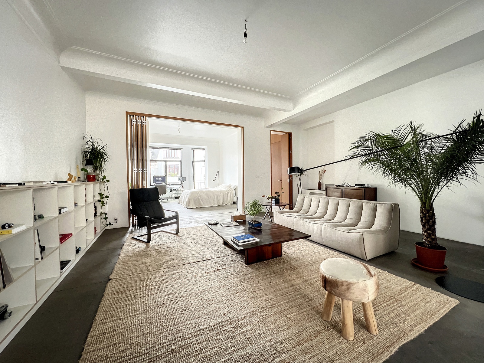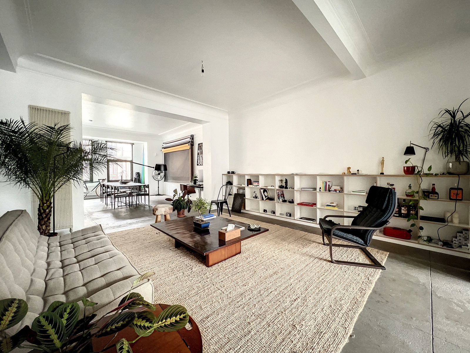 ONDER OPTIE! Op een steenworp afstand van Square de l'Aviation, prachtig appartement in loftstijl van ± 157 m² bruto met twee balkons op de 3e verdieping. Il se compose comme suit: Hall d'Etrée de ± 8,9 m² AVEC Vestiaire, salon de ± 32,3 m², salle à manger de ± 29,3 m², keuken super équipée de ± 19,9 m², chambre de ± 22,9 m² comprenant salle de bains et dressant en dledingkleedkleding met toegang tot een terras van ± 2,6 m², tweede slaapkamer van ± 27,3 m² met toegang tot een balkon van ± 1,8 m², apart toilet van ± 1,1 m². PEB: D+. Lage ladingen! Officieel in de gemeente Anderlecht. Om zo snel mogelijk te ontdekken!