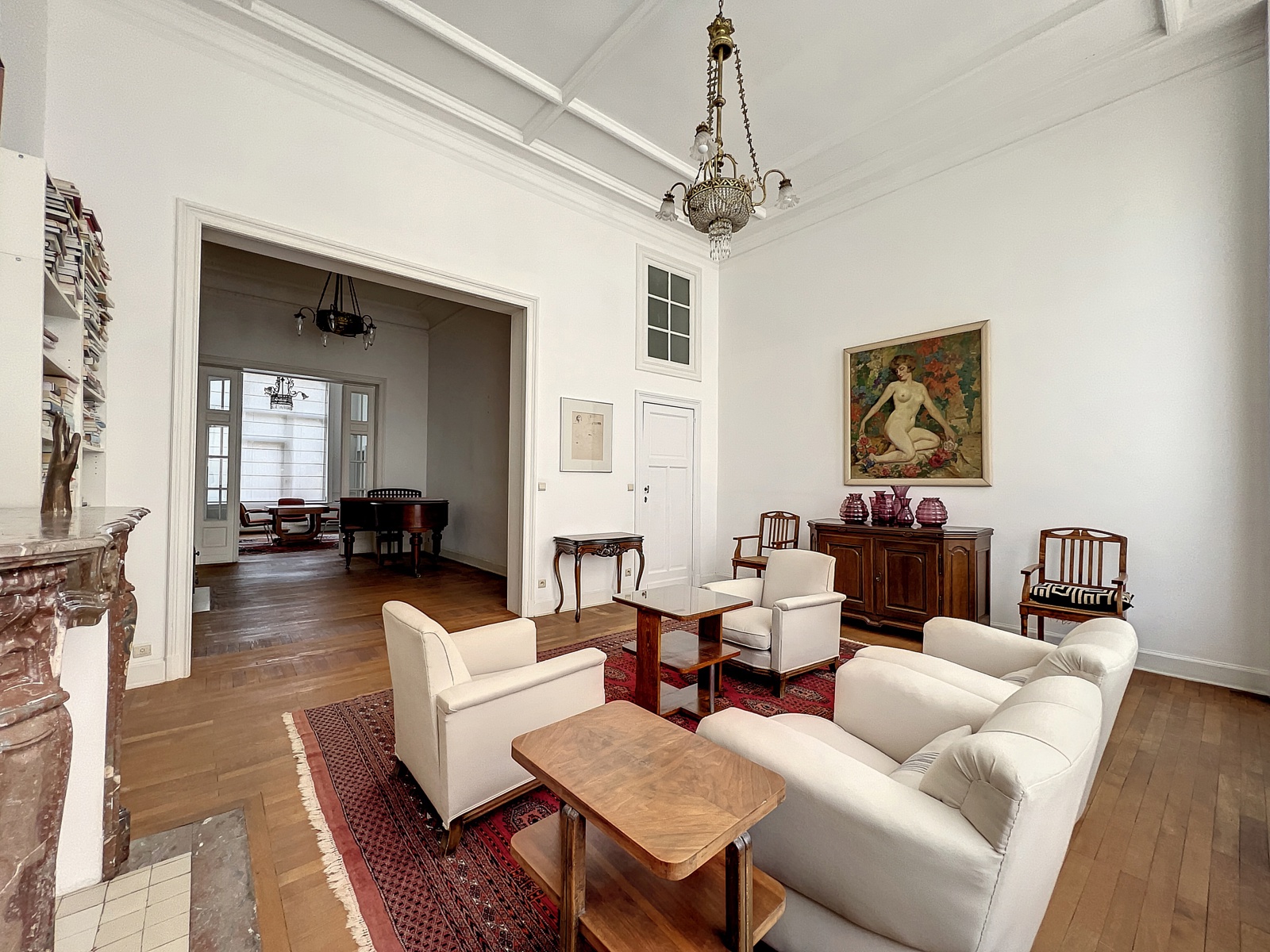 VERKOCHT! Gerechtsgebouw, prachtig investeringsgebouw van ± 452 m² bruto met tuin waarvan 4 erkende eenheden. Het is als volgt samengesteld: Gelijkvloers van ± 72 m² bruto (kantoren) inclusief 3 aangrenzende kamers van ± 24,7 m², ± 19,4 m² en ± 19,2 m² en die toegang geven tot een tuin van ± 70 m² gelegen op het zuidwesten. Op de 1e, 2e en 3e verdieping, 3 appartementen met 1 slaapkamer + kantoor van ± 87, 85 en 85 m² bruto. Verder: Dubbele beglazing, parketvloer, wasruimte, rolluiken op de begane grond, regenwatertank, gasboiler, waterontharder, grote kelders. PEB: F. Om zo snel mogelijk te ontdekken!
